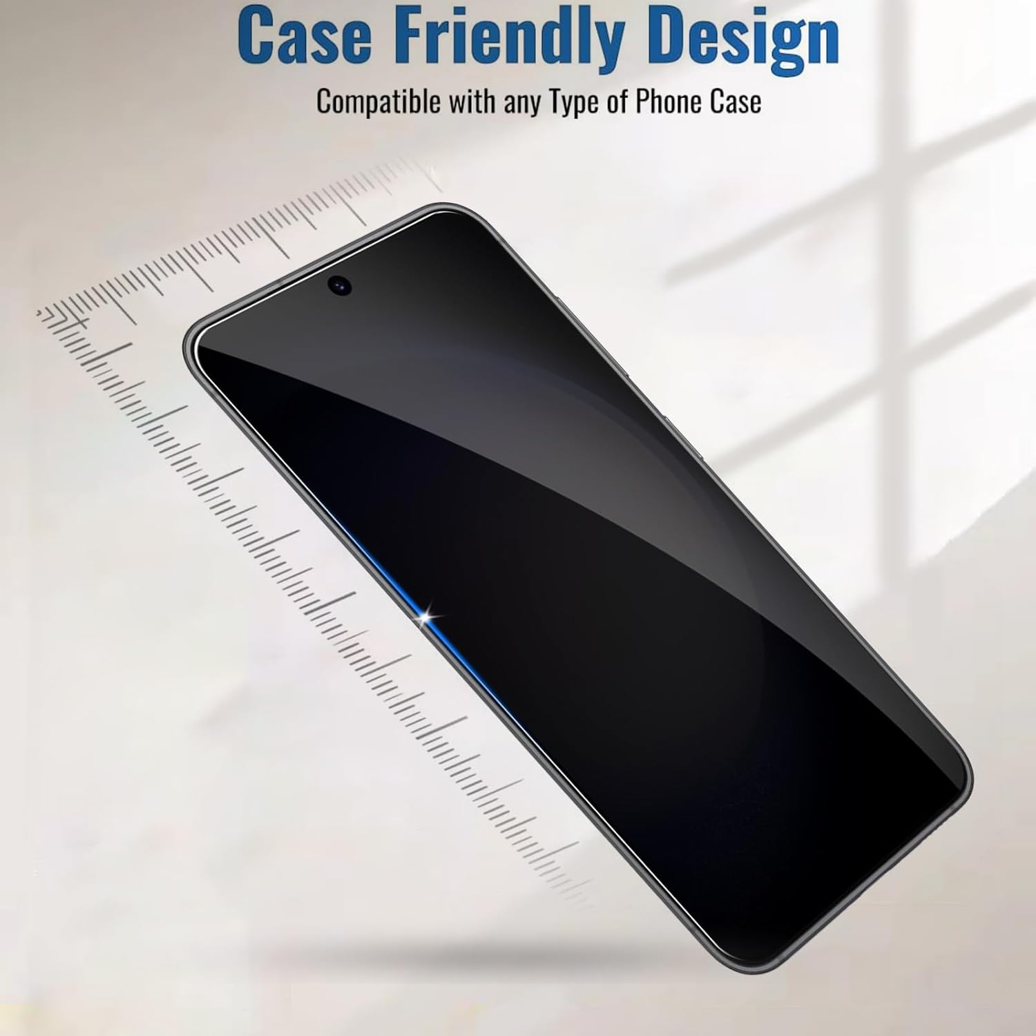 Con tecnologia antistatica avanzat Forte adesione, Si attacca facilmente, Senza bolle. Tagliato con precisione per Samsung S23, questo vetro privacy non interferisce con la funzione Face ID