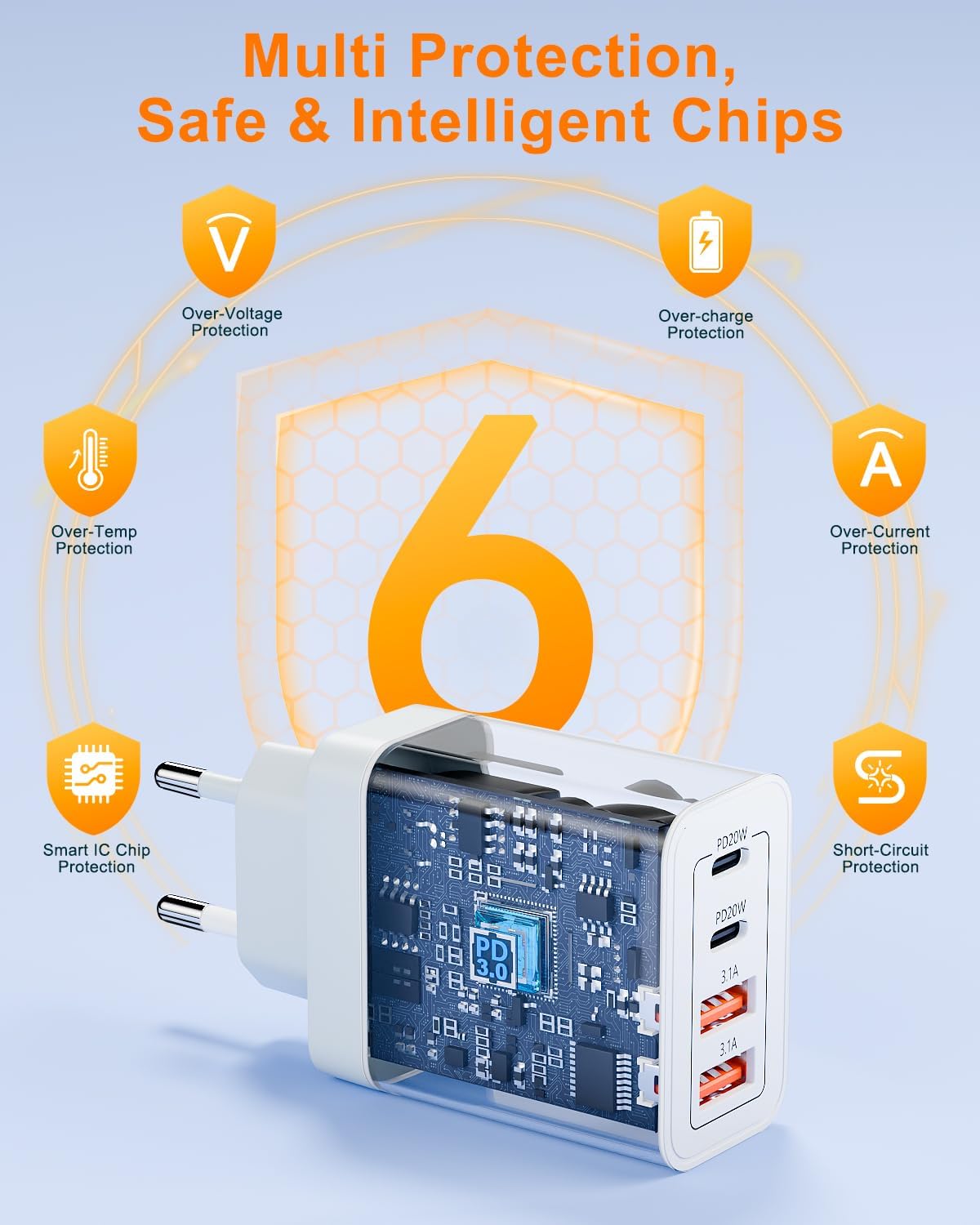 Really impressed with this charger. It’s surprisingly compact for something that offers 4 ports and 40W of power. I’ve used it to charge my iPhone 14, iPad, and AirPods all at the same time, and everything charges quickly without any noticeable drop in speed. The dual PD 3.0 ports are great for fast-charging newer phones, and the QC port works well with my older Samsung device too.The build feels solid, and the UK plug fits snugly in the socket, no wobbling or loose connection. It doesn’t overheat either, even when all ports are in use. Honestly, it’s perfect for anyone with multiple devices or a mix of Apple and Android gear. Great for travel or just to tidy up your charging station at home. Would definitely buy again.