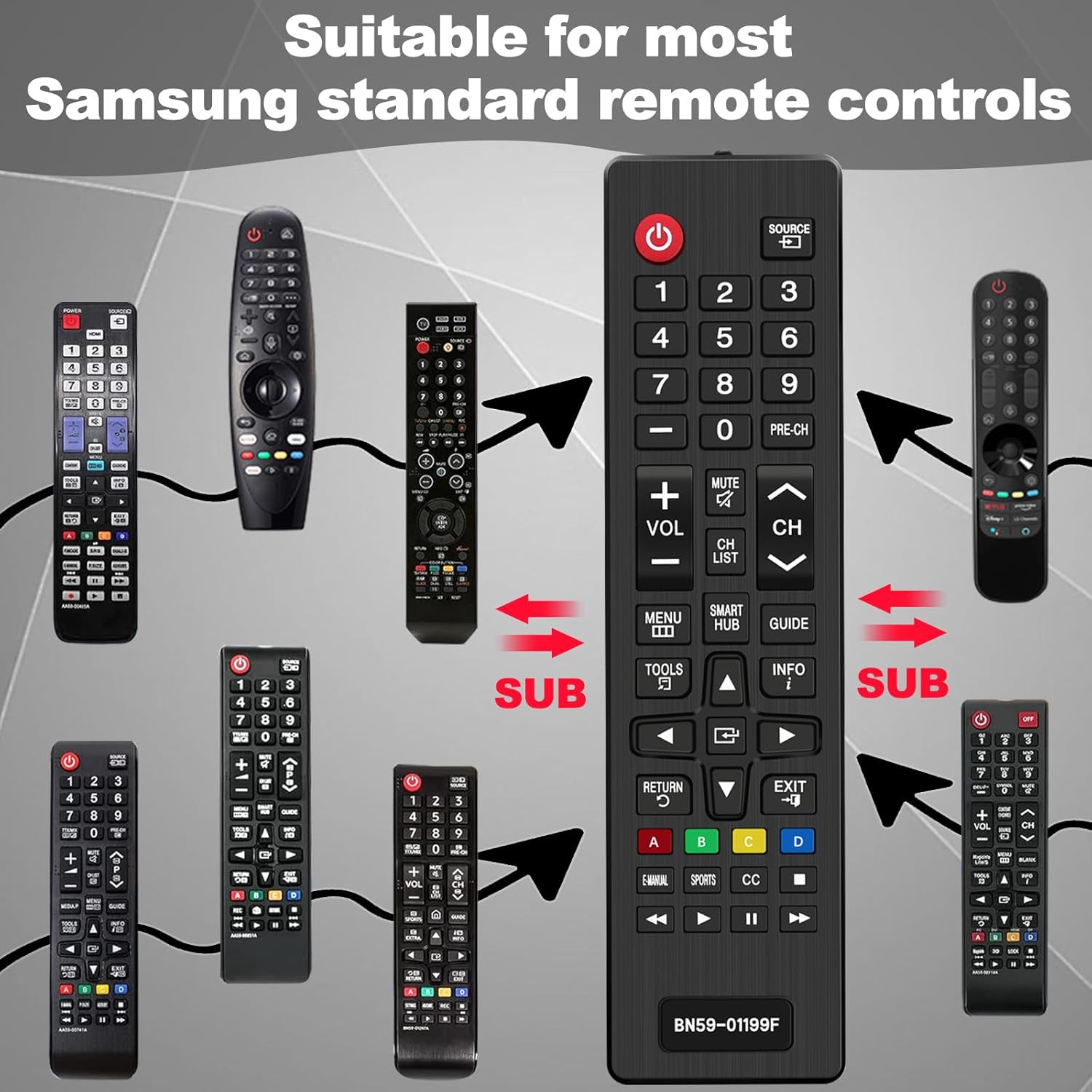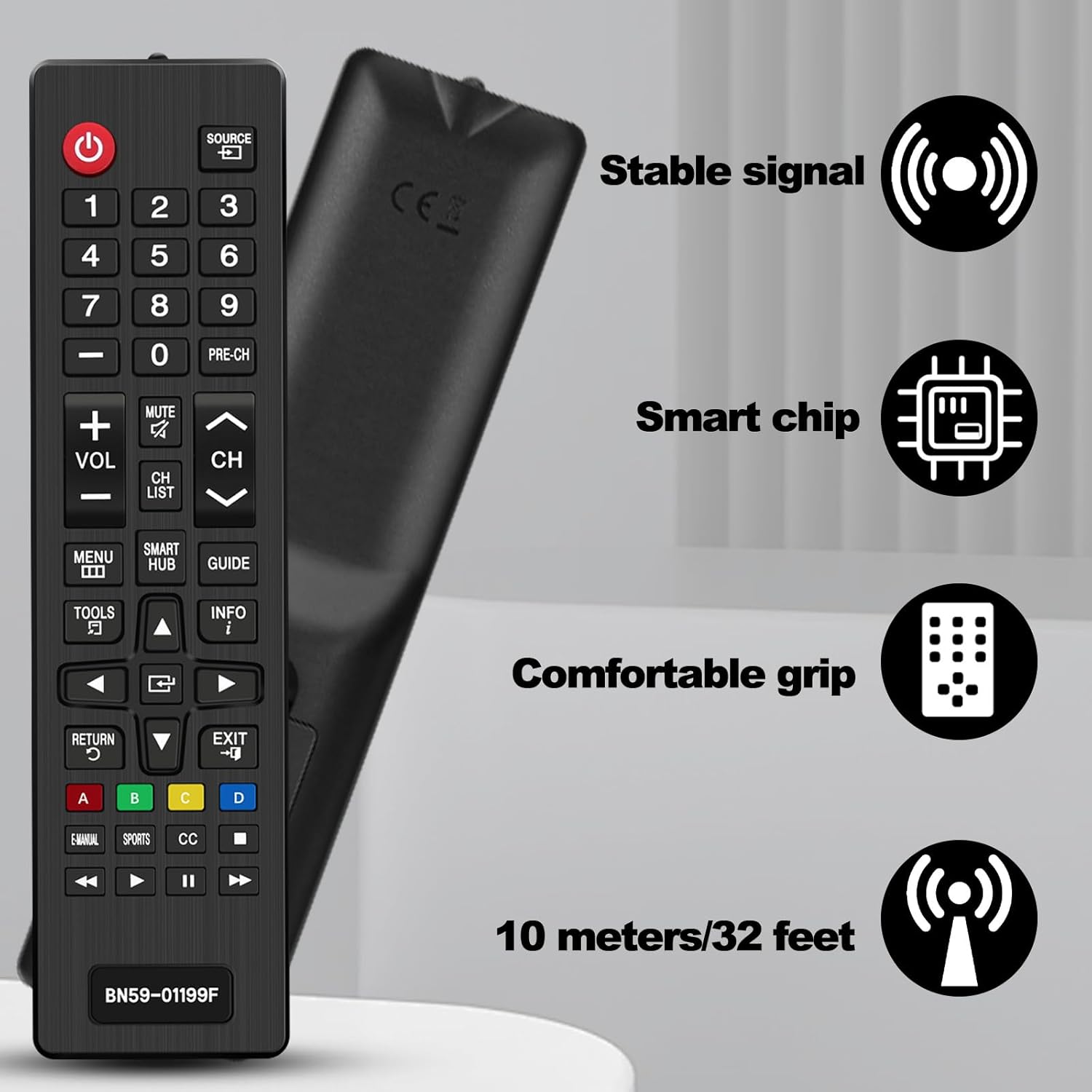 Ampia compatibilità: Compatibile con la maggior parte dei modelli di telecomando per Smart TV per Samsung: BN59-01199F, BN59-01312A, UN40J6200AF, UN43J520DAFXZA, UN43JU640DF, UN48J520DAF, UN48JU640DF, UN48J520DAF, UN32J4500AF, UN48JU640DF, UN50J5200AFXZA, ecc.