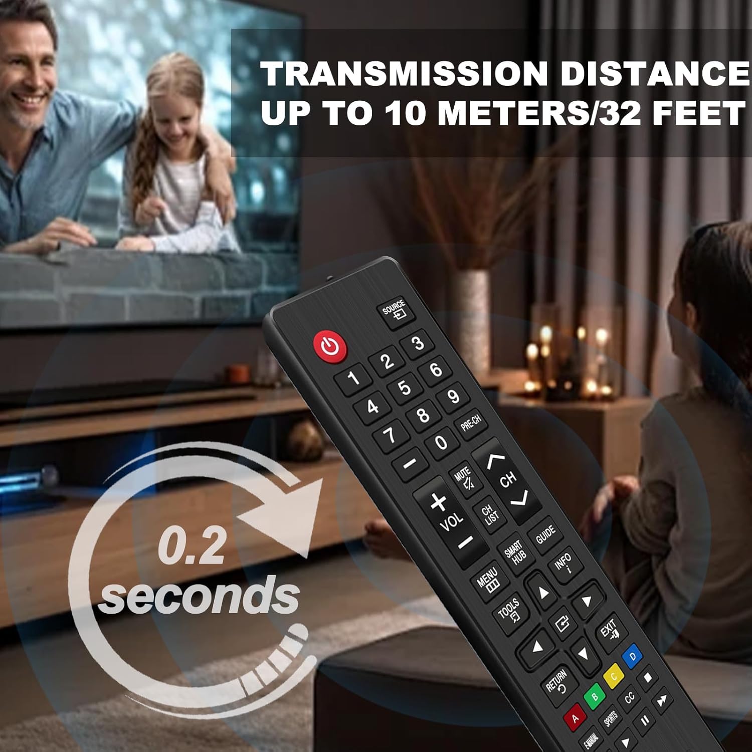 Telecomando di alta qualità: Nostro telecomando tv per samsung è realizzato in materiale ABS di alta qualità con eccellenti prestazioni di trasmissione a lunga distanza e stabilità. Può sostituire il telecomando danneggiato o invecchiato, coprendo la maggior parte delle funzioni dei televisori per Samsung Smart TV.