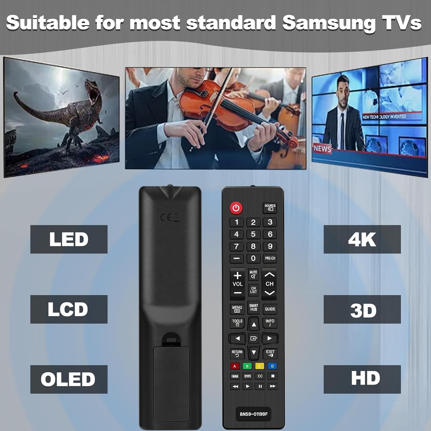 2 Pezzi Telecomando Universale per Samsung Smart TV, BN59-01199F Sostitutivo Telecomando, Compatibile con Samsung Smart TV LCD LED HDTV 3D 4K, Nessuna Configurazione, Telecomando TV Universale