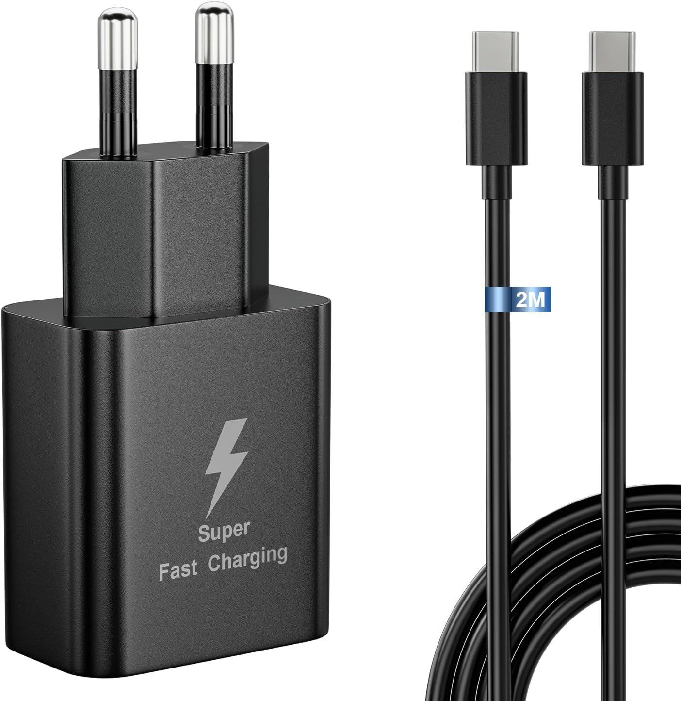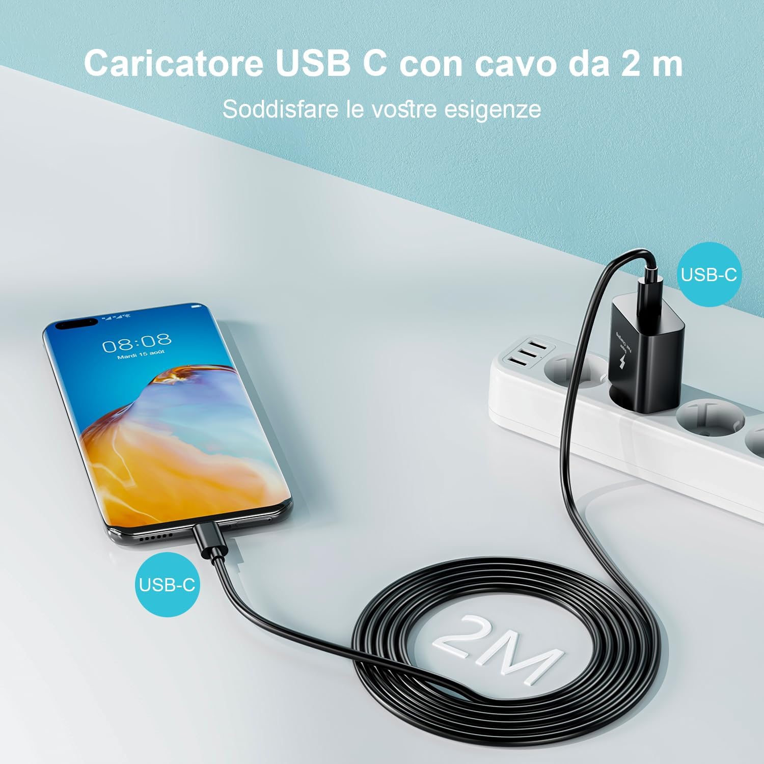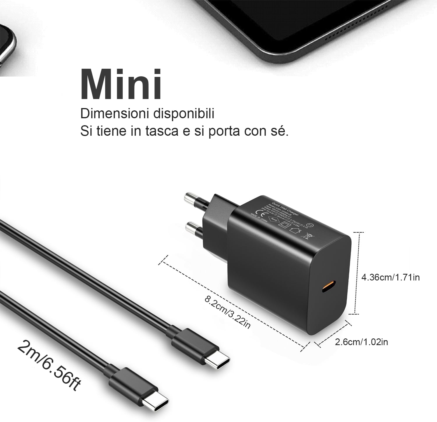 25W Caricabatterie rapido, Caricabatterie Type c per Samsung A15/A14/A13/A33/A34/A23/A53/ A52/ A54/A55/S23/S23+/S23 Ultra/ S22/ S21/M33/xiaomi/huawei/LG/Google/da 25W con cavo da 2M