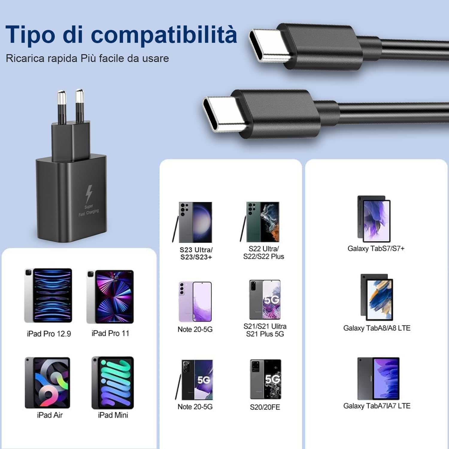 Caricatore rapido USB C per Samsung Galaxy S23/S23+/S23 Ultra 5G/S22/S22+/S22 Ultra 5g/S21/S21+/S21 Ultra 5G/S20/S20+/S20 Ultra 5G/S20 FE/S21 FE/S10/S10+/S9/S9+/S8/S8+/S10e/S10/S10+/Note. 20Ultra/Note 10 9 8 Plus/A54/A53 5g/A52/A52s/A515G/A50/A41/A40/A70/A715g/A72/A12/A13/A20/A20e/A20s/A21/A21s/A22/A30/A30s/A31/A32/A33/A10e/A11/A10s/M53 5g/M52/ M51/M40/M32/M31/M30/M22/M20; Galaxy Z fold 3/4/2/Z Galaxy Z flip 5G; e tablet Galaxy USB C Tab