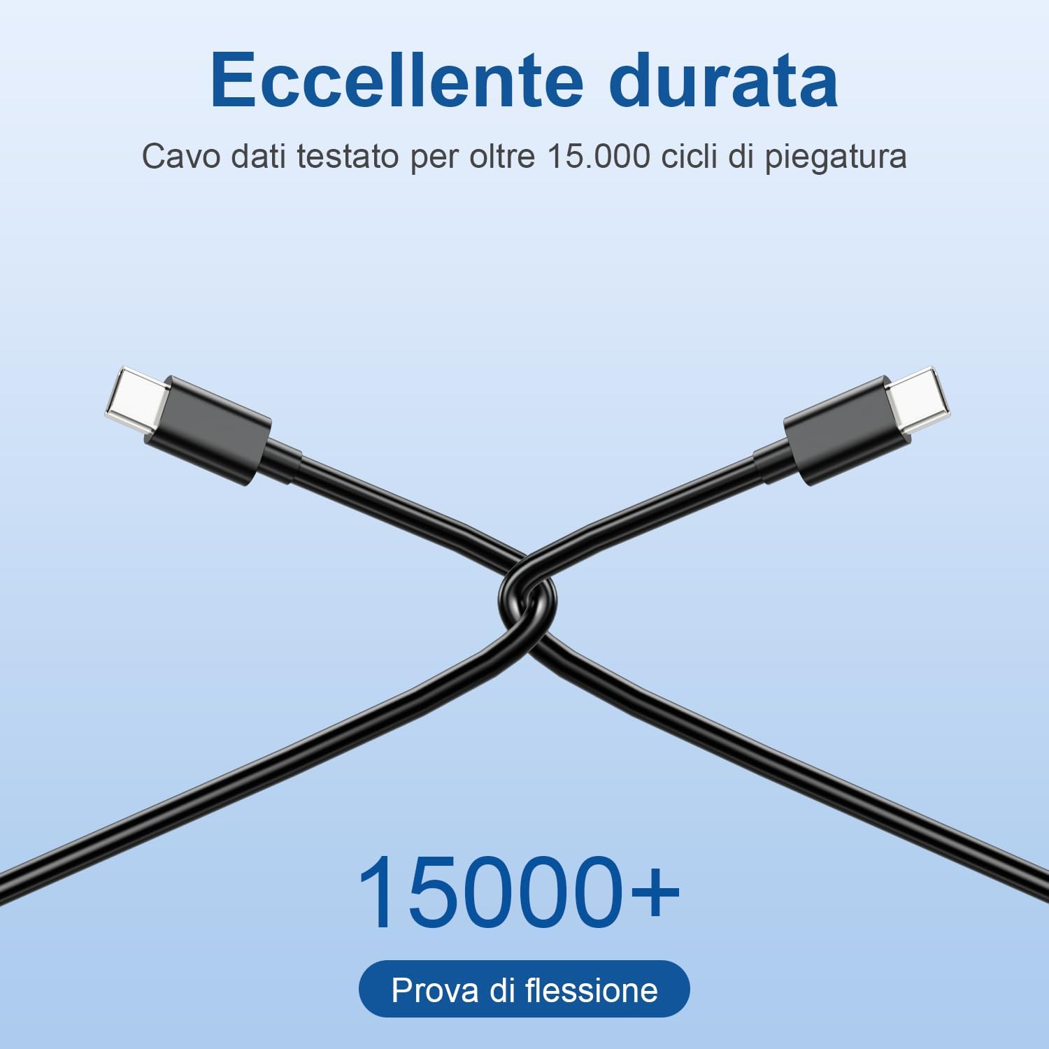 Cavo USB C a USB C 2M, velocità di trasferimento dati 480 Mbps, corrente di ricarica fino a 3 Ampere. I cavi di ricarica samsung da 2M offrono la massima comodità per ricaricare il dispositivo comodamente dal letto, dal divano o dall’ufficio.