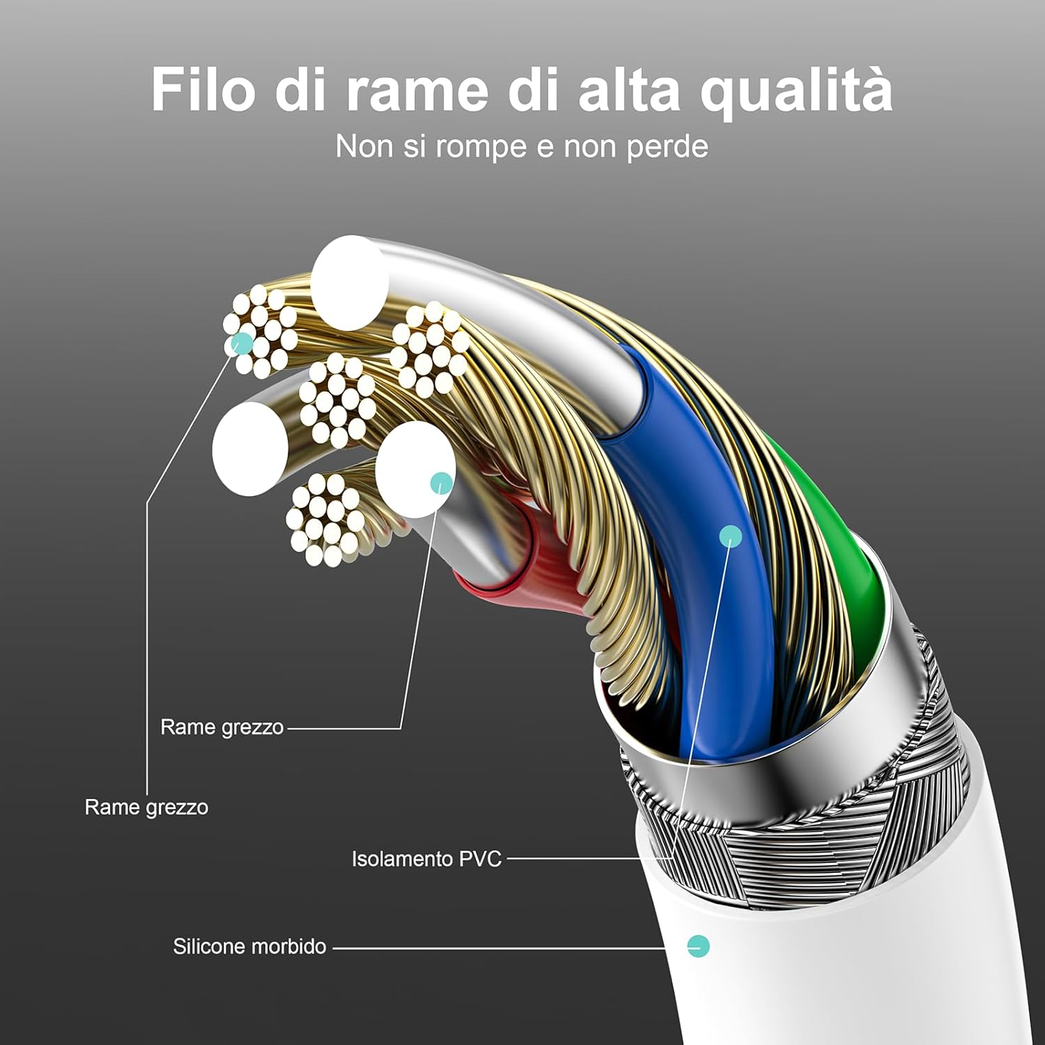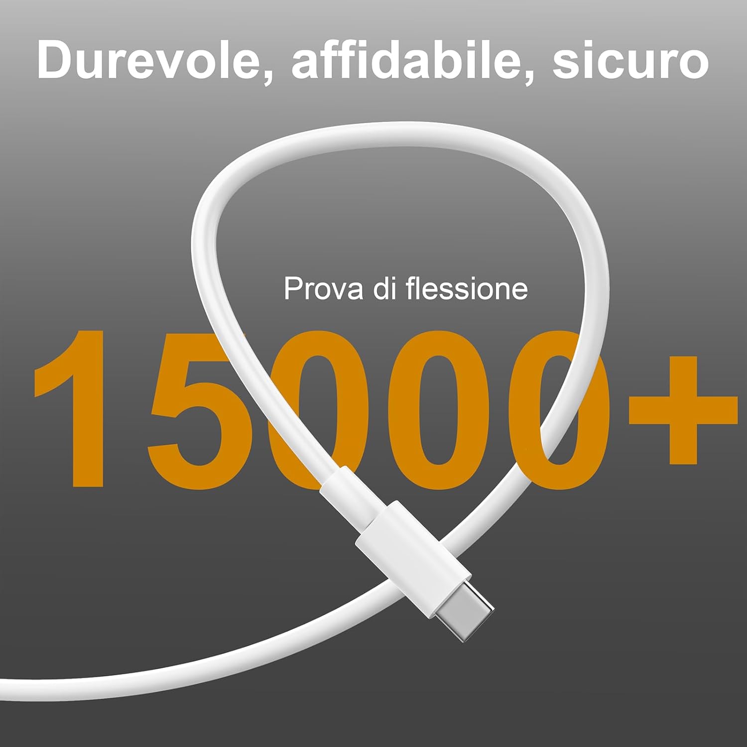 Il cavo USB C è dotato della tecnologia di stampaggio a iniezione TPE, ha superato oltre 5.000 test di piegatura e oltre 5.000 test di durata plug and unplug, durevole per l’uso.