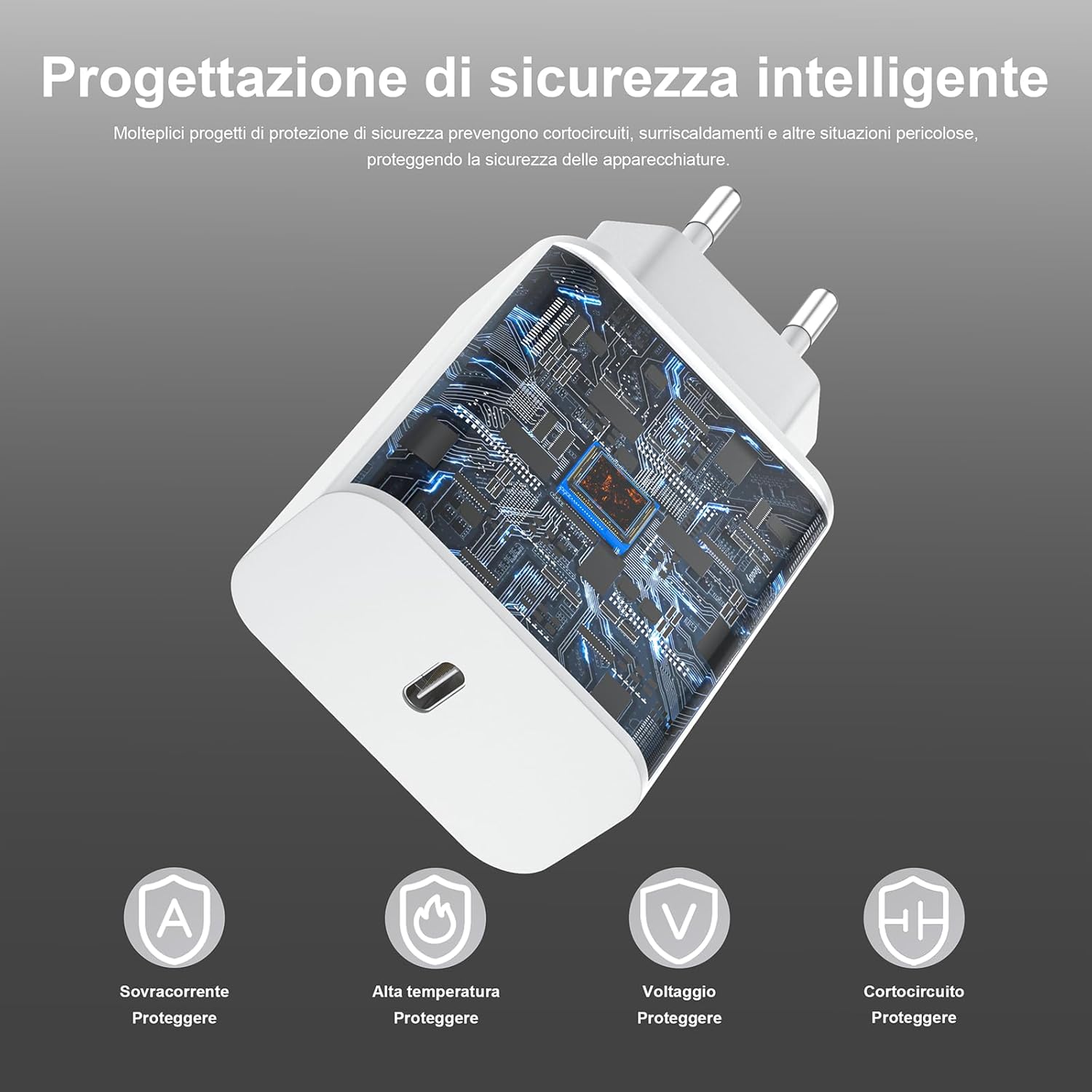 Caricabatterie Samsung USB-C: il caricabatterie Samsung è dotato di un chip intelligente integrato e di un sistema di protezione multiplo, certificato CE-FCC-ROHS, che fornisce protezione da cortocircuito, sovratensione, sovracorrente e carica lenta. Nessun rischio di surriscaldamento o di danni al telefono Samsung, ricarica sicura e lunga durata.