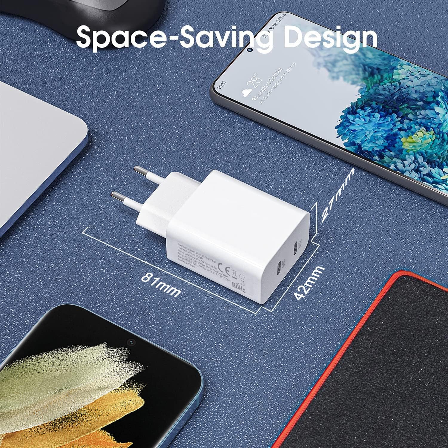 【Doppio 25W】 Con doppia USB C porta di alimentazione rapido,Supporta la maggior parte dei protocolli di ricarica: PD 3.0, QC 4.0,Puoi caricare fino a due smartphone o tablet con i tuoi dispositivi ad alta velocità per ridurre al minimo i tempi di attesa
