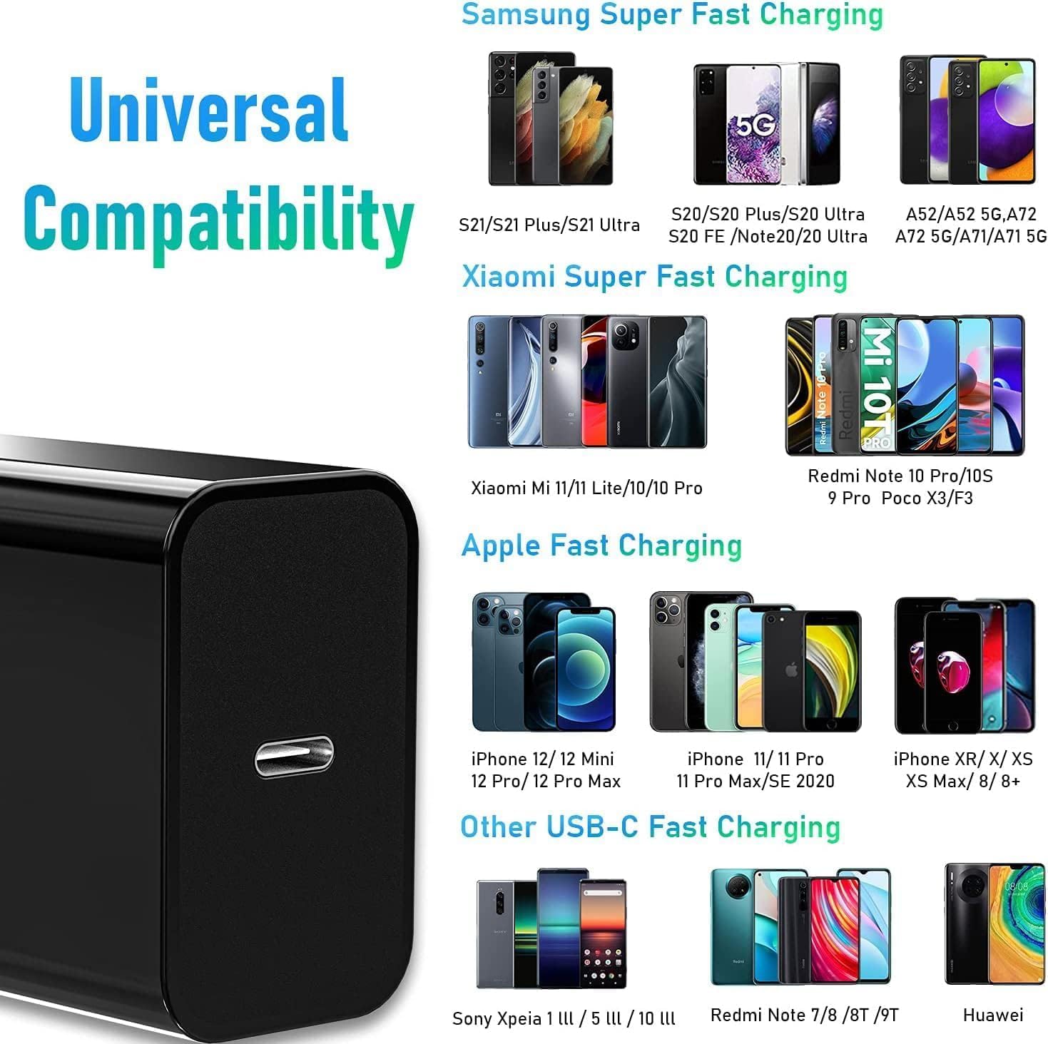 Caricabatterie USB C per iPhone :Se utilizzi iPhone 8 o successivo, questo caricatore PD può caricare rapidamente il tuo iPhone(25W Max). Carica il tuo iPhone 12 13 fino al 50% in soli 30 minuti ed è più veloce dell’alimentatore originale.