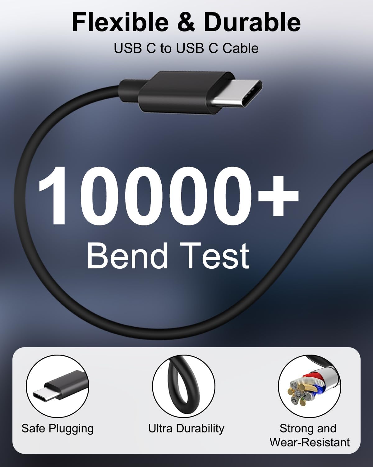 Cavo USB-C a USB-C 2M: Il alimentatore usb c viene fornito con un cavo USB C a USB C da 2M, corrente di carica fino a 3 ampere, progettato per la ricarica rapida e il trasferimento dei dati. Il cavo di ricarica di tipo C con rivestimento in TPE ha migliorato il test di durata con oltre 10000 piegature, per una ricarica più sicura e una maggiore durata. Il presa con cavo da 2M è facile da trasportare e adatto a molti scenari: casa, viaggio, ufficio, hotel, auto.