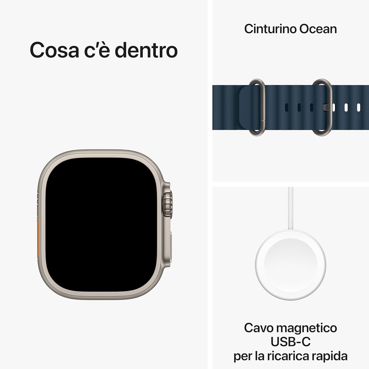Apple Watch Ultra 2 GPS + Cellular 49mm Smartwatch con robusta cassa in titanio e Cinturino Ocean blu. Fitness tracker, GPS di precisione, tasto Azione, batteria a lunghissima durata