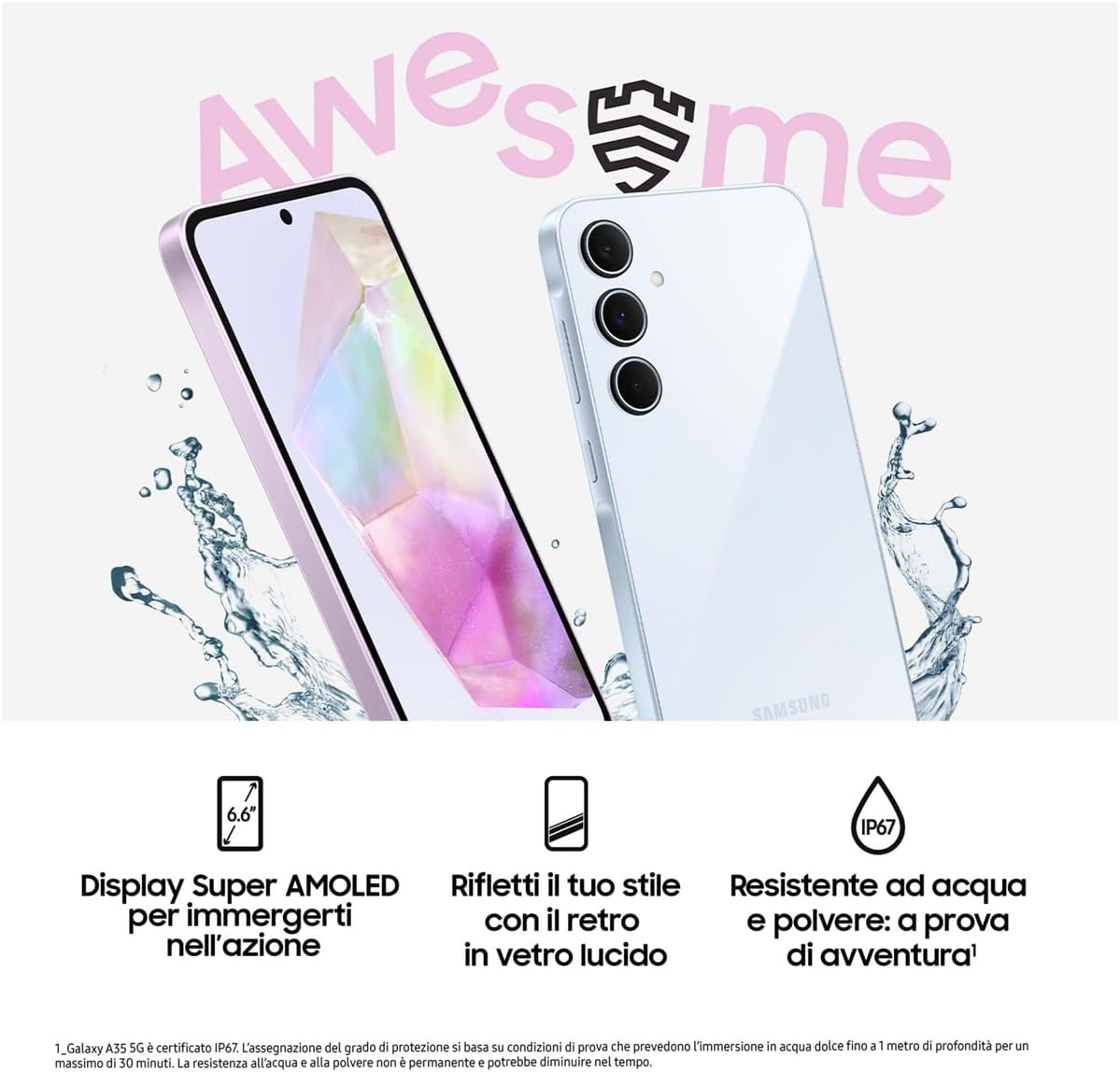 Samsung Galaxy A35 5G,Clear Cover inclusa, Smartphone Android 14, Display FHD+ Super AMOLED 6.6”, 8GB RAM e 256GB di memoria interna espandibile, Batteria 5.000 mAh, Awesome Navy [Versione Italiana]