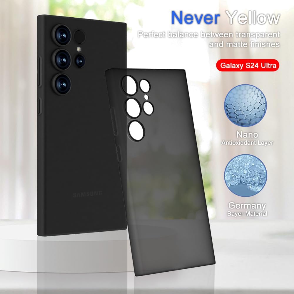 [Faccia opaca]: X-level thin cover Samsung Galaxy S24 Ultra è con texture ottica opaca, controllo dell’abbagliamento (riduzione della riflessione), riduzione delle impronte digitali o accumulo di grasso e non diventa gialla con il tempo.