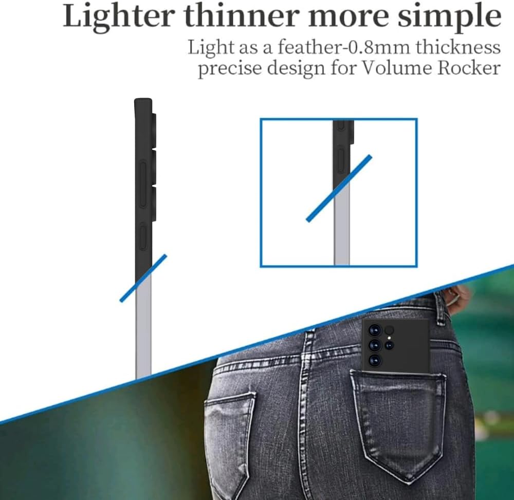[Ultra sottile]: X-level cover ultra sottile Samsung Galaxy S24 Ultra è solo 0,3 mm di spessore, la custodia si adatta perfettamente al tuo telefono senza compromettere la bellezza del design originale, il policarbonato premium leggerissimo, e con rivestimento