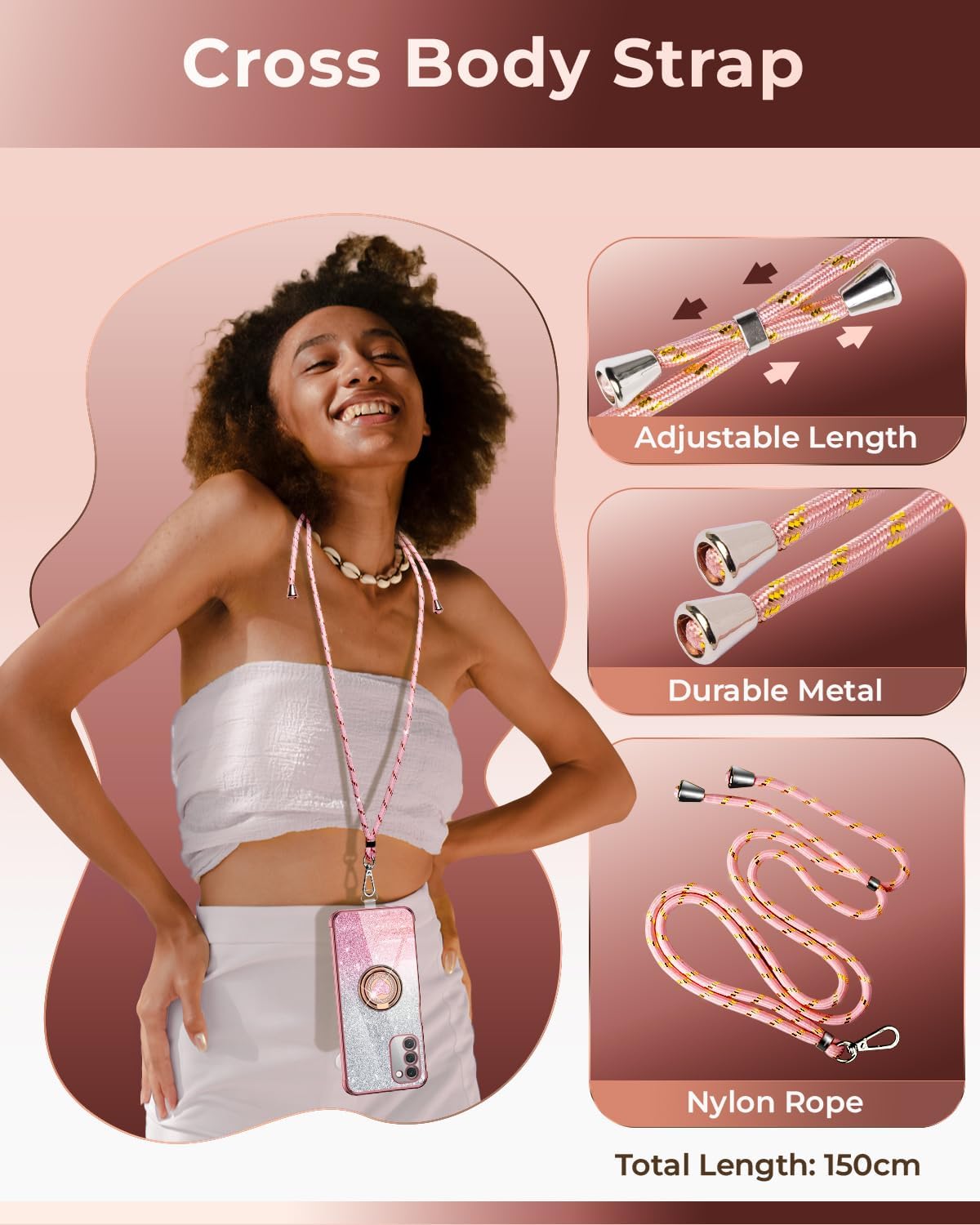 【Catena per cellulare regolabile】Ideale per chi è costantemente in movimento. Questa custodia sottile con catena per cellulare unisce stile, funzionalità e comfort. Aiuta a prevenire perdite o cadute accidentali. Goditi la libertà delle mani mentre fai shopping, vai in bicicletta o scatti foto