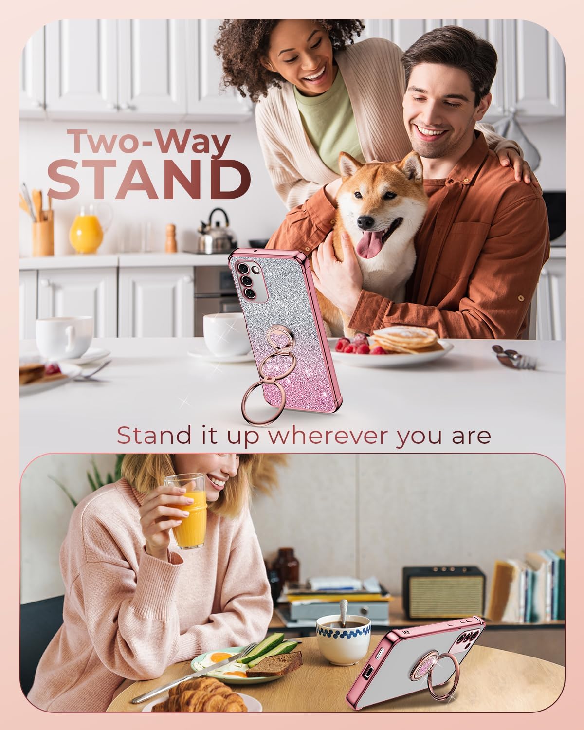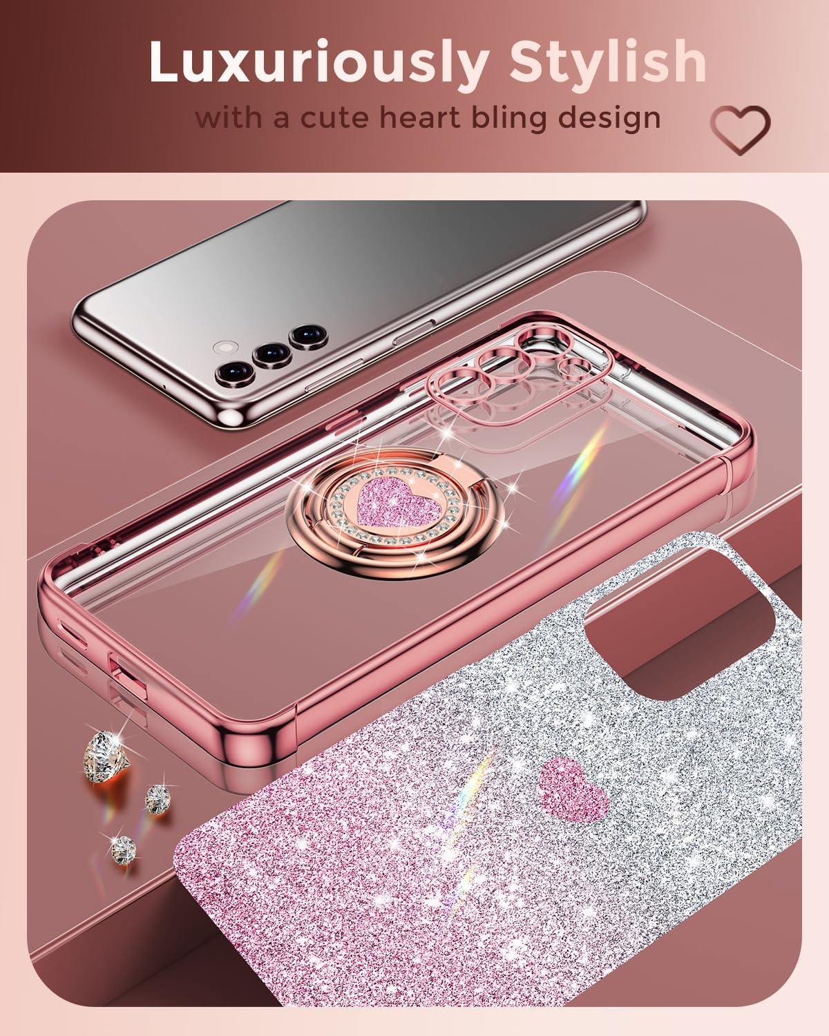 【Design lussuoso e carino】Con un bordo elettrolitico e un supporto per anello a cuore, questa custodia aggiunge eleganza e fascino al tuo telefono. È una rappresentazione perfetta del tuo gusto per il lusso e lo stile. Un regalo ideale per tua moglie, madre, figlia, fidanzata e amici in occasioni come anniversari, festa della mamma, compleanni, Natale, San Valentino e altro ancora