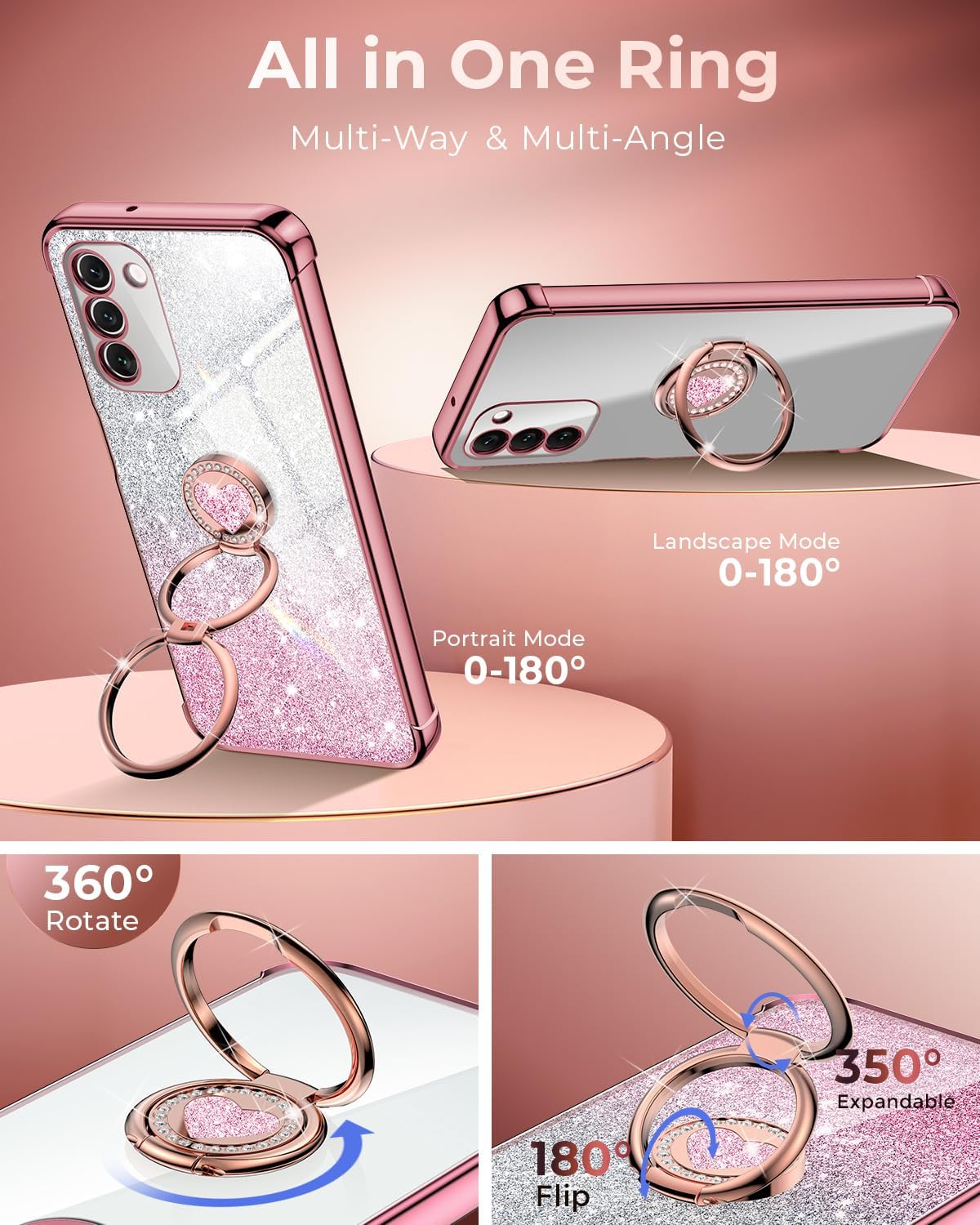 【Supporto ad anello a 2 vie a 360°】 questa custodia per cellulare Samsung S23 ha un anello a forma di cuore che può essere piegato di 180° e ruotato di 360°. Questo supporto a doppio anello supporta sia l’orientamento verticale che orizzontale con molteplici angoli regolabili. È stabile e offre comfort durante la lettura, la navigazione, la visione di film o FaceTime