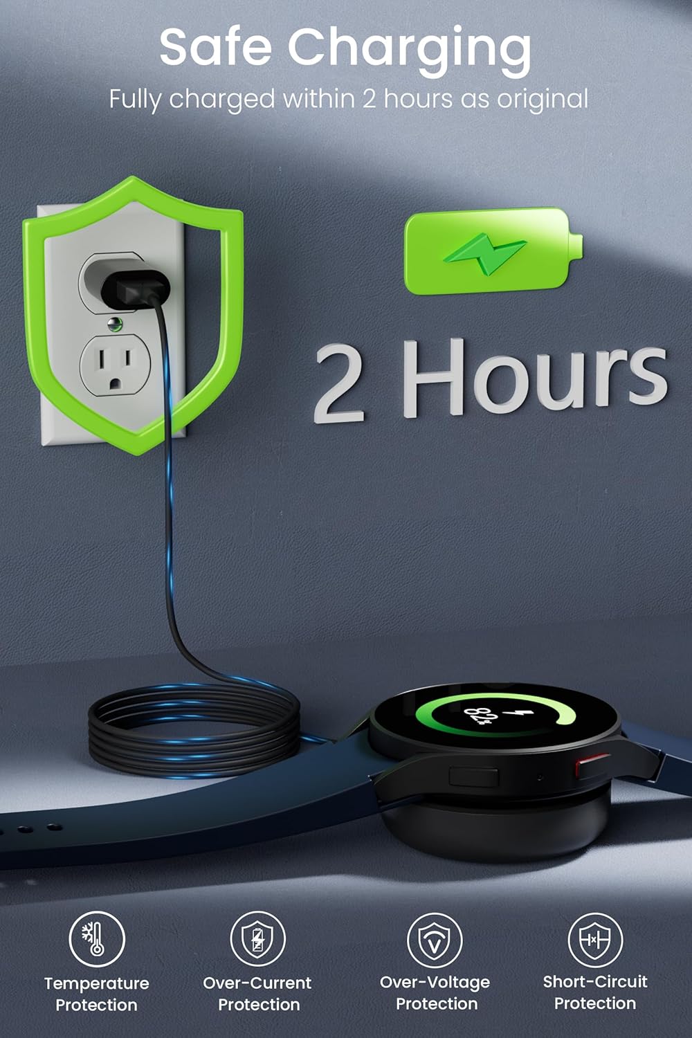Ricarica affidabile: forte forza magnetica, superficie di ricarica concava per una vestibilità perfetta e una ricarica affidabile. Quando posizionato su di esso, Galaxy Watch inizia a caricare. I dispositivi di ingresso USB-A da 5 V 1 A possono supportare questo cavo di ricarica.