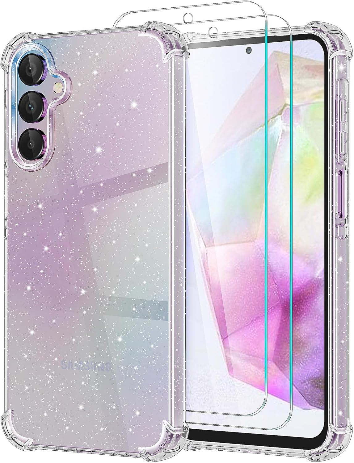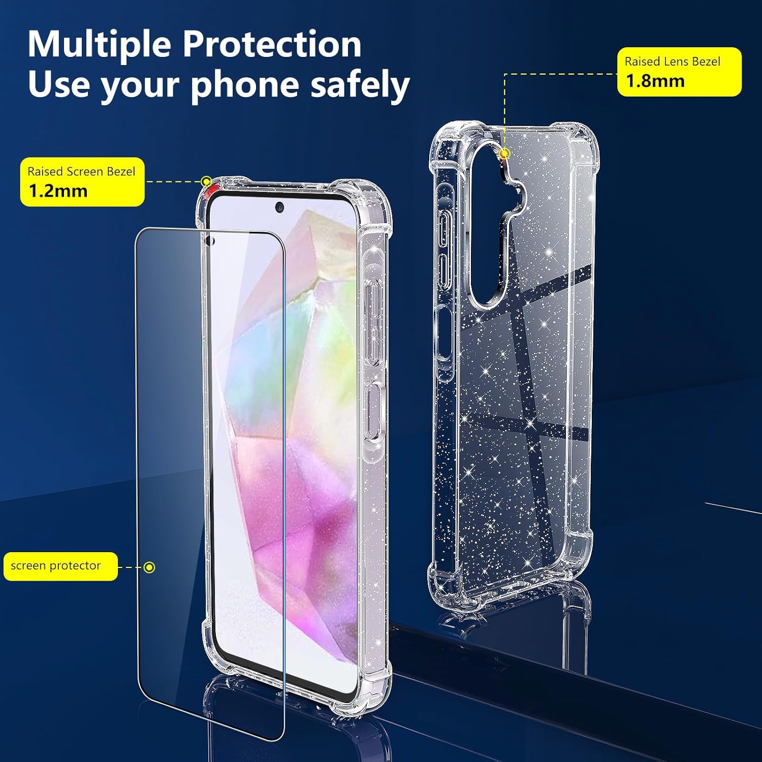 13 reviews for YIRSUR Cover per Samsung Galaxy A35 5G Glitter, con 2 Pezzi Vetro Temperato Pellicola Protettiva, Trasparente Glitter Custodia Protettiva Antiurto Morbida e in Silicone