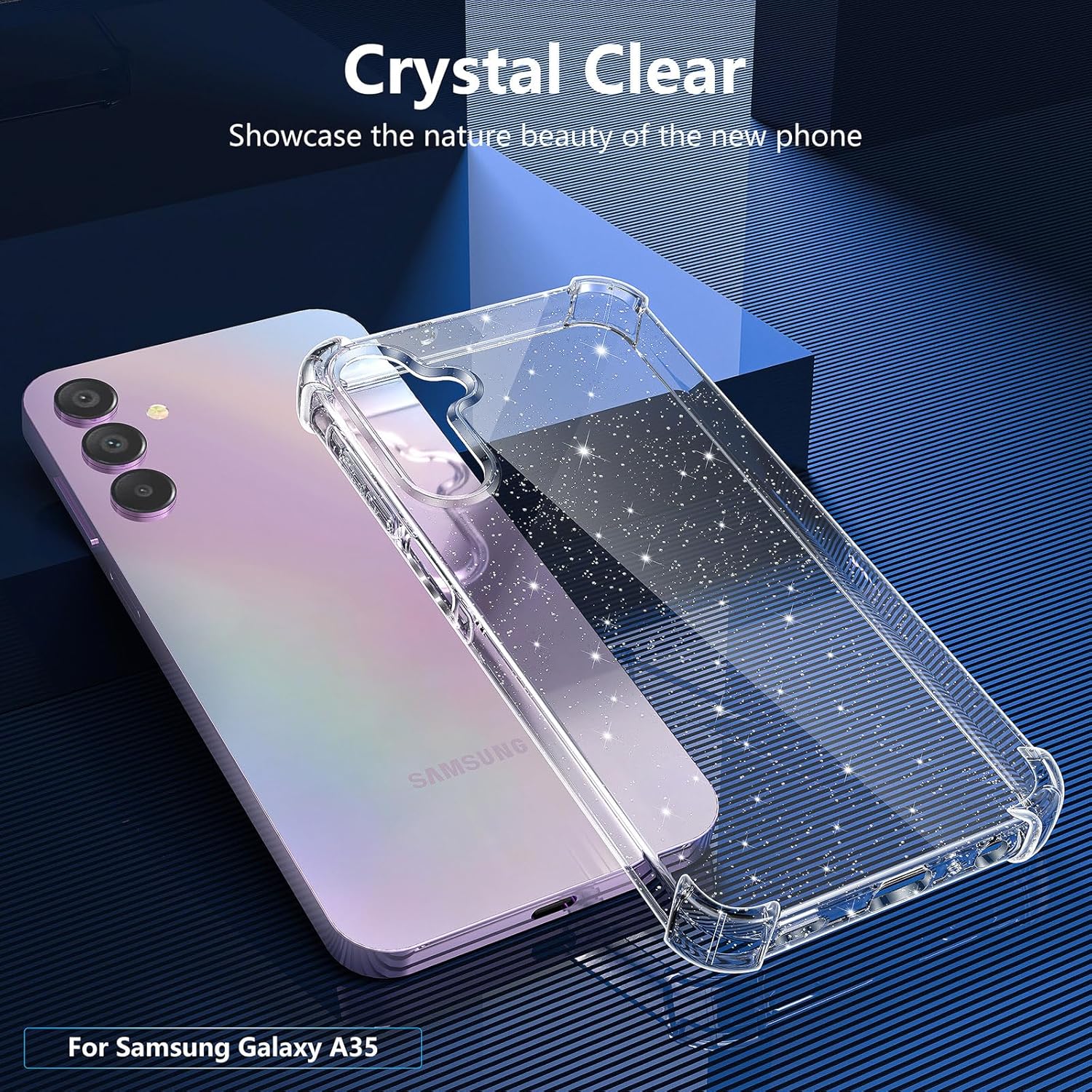 YIRSUR Cover per Samsung Galaxy A35 5G Glitter, con 2 Pezzi Vetro Temperato Pellicola Protettiva, Trasparente Glitter Custodia Protettiva Antiurto Morbida e in Silicone