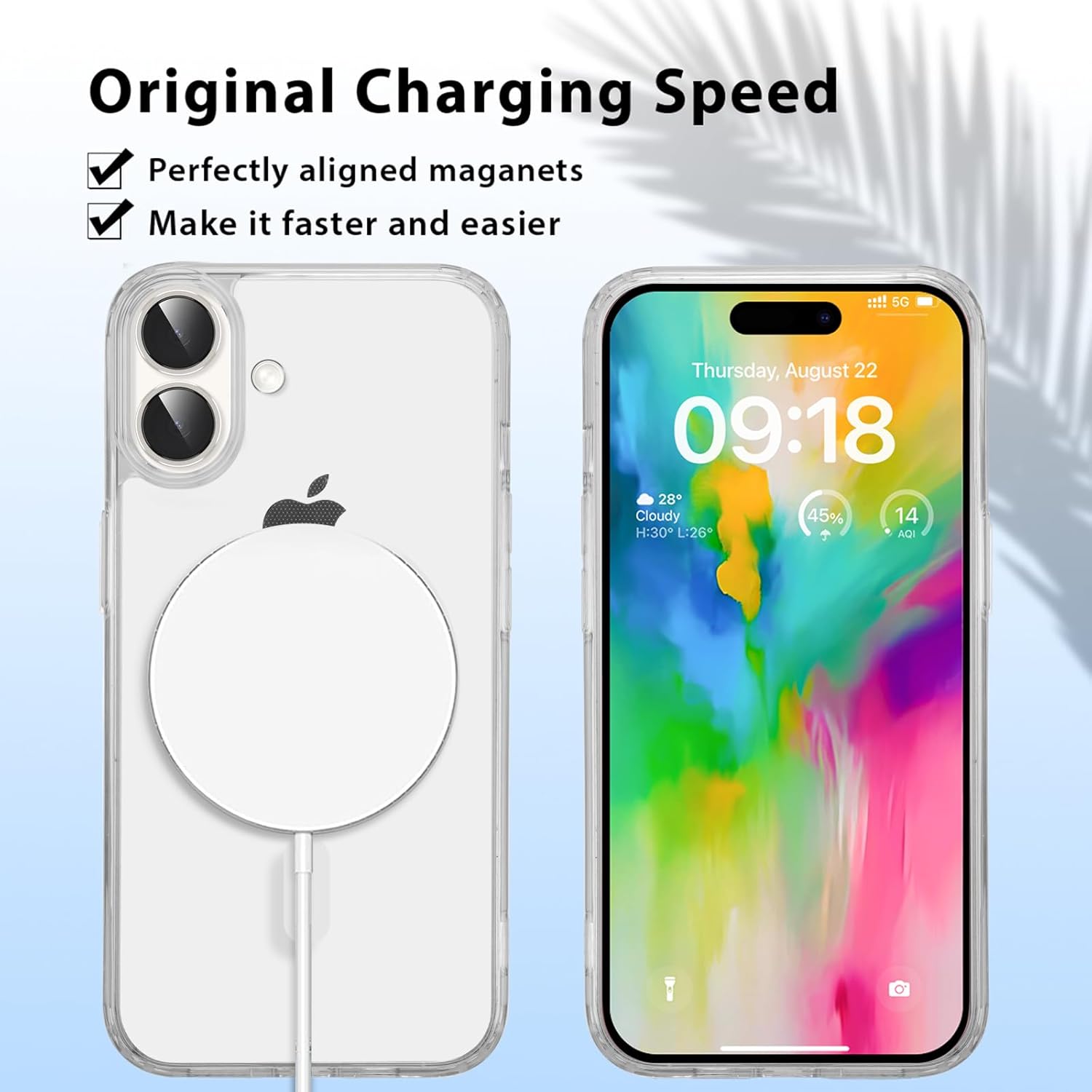 La cover e’ fatta benino, la finitura buona, calza bene, e’ trasparente bianca ghiaccio; con la cover indossata il cellulare va in carica wireless regolarmente, ma invece si attacca molto poco alla calamita tonda che uso in auto, e il telefono si muove, gira e infine cade. Insomma fallito uno scopo su tre: protezione ok, carica ok, attacco magnetico KO.