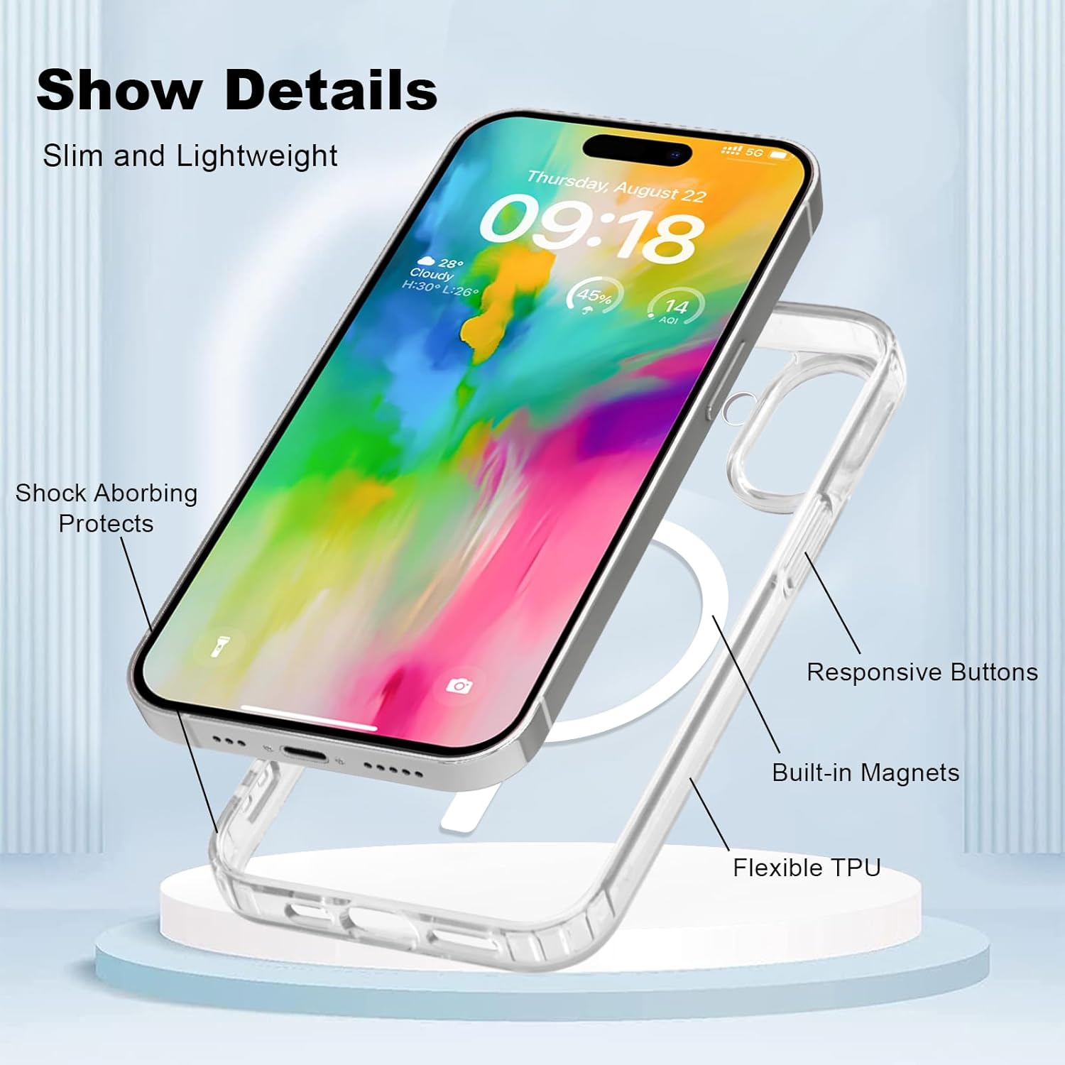 La cover posteriore trasparente e resistente all’ingiallimento lascia vedere il look originale del tuo cellulare, offrendo al contempo protezione e una presa confortevole.