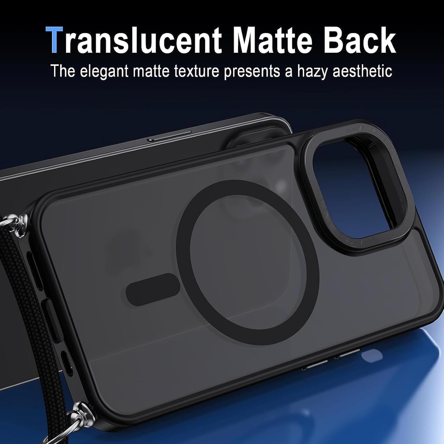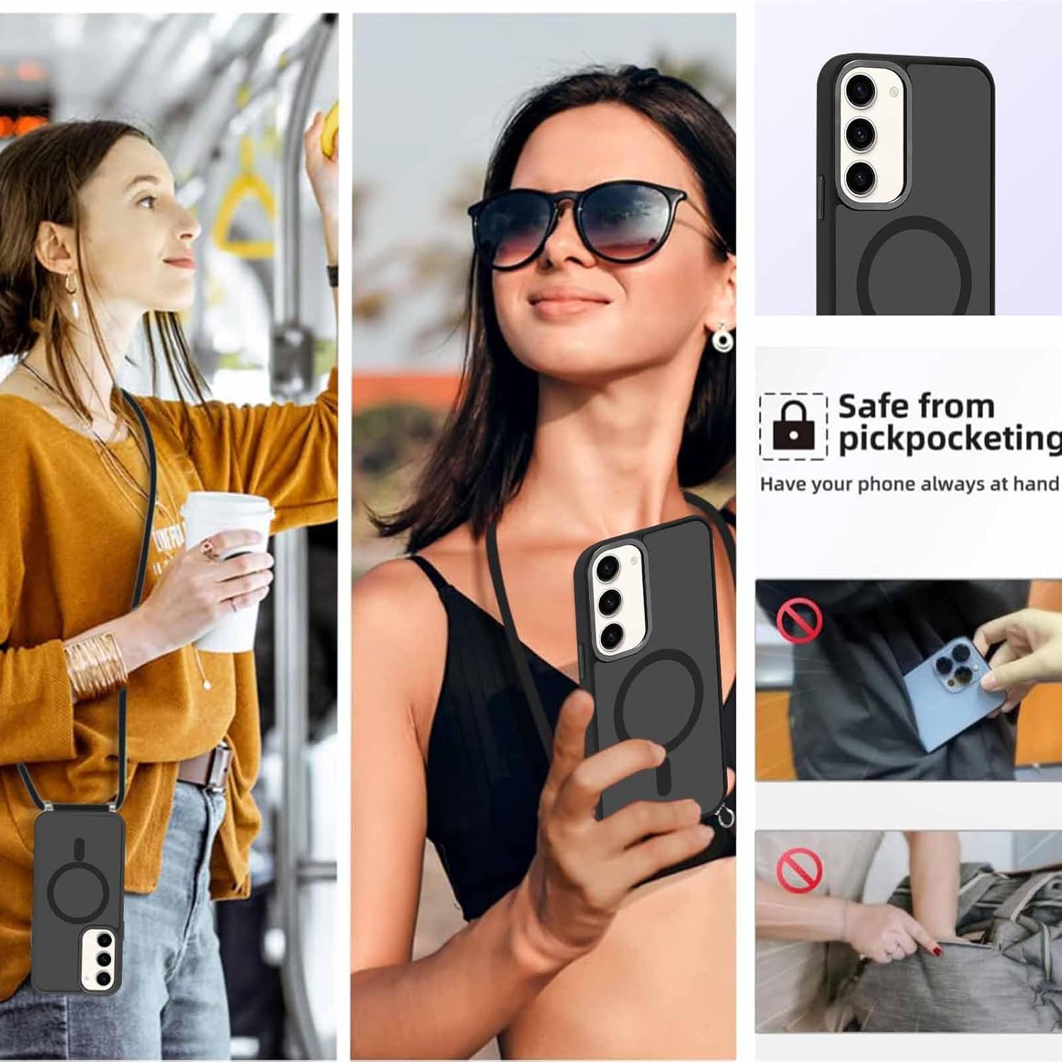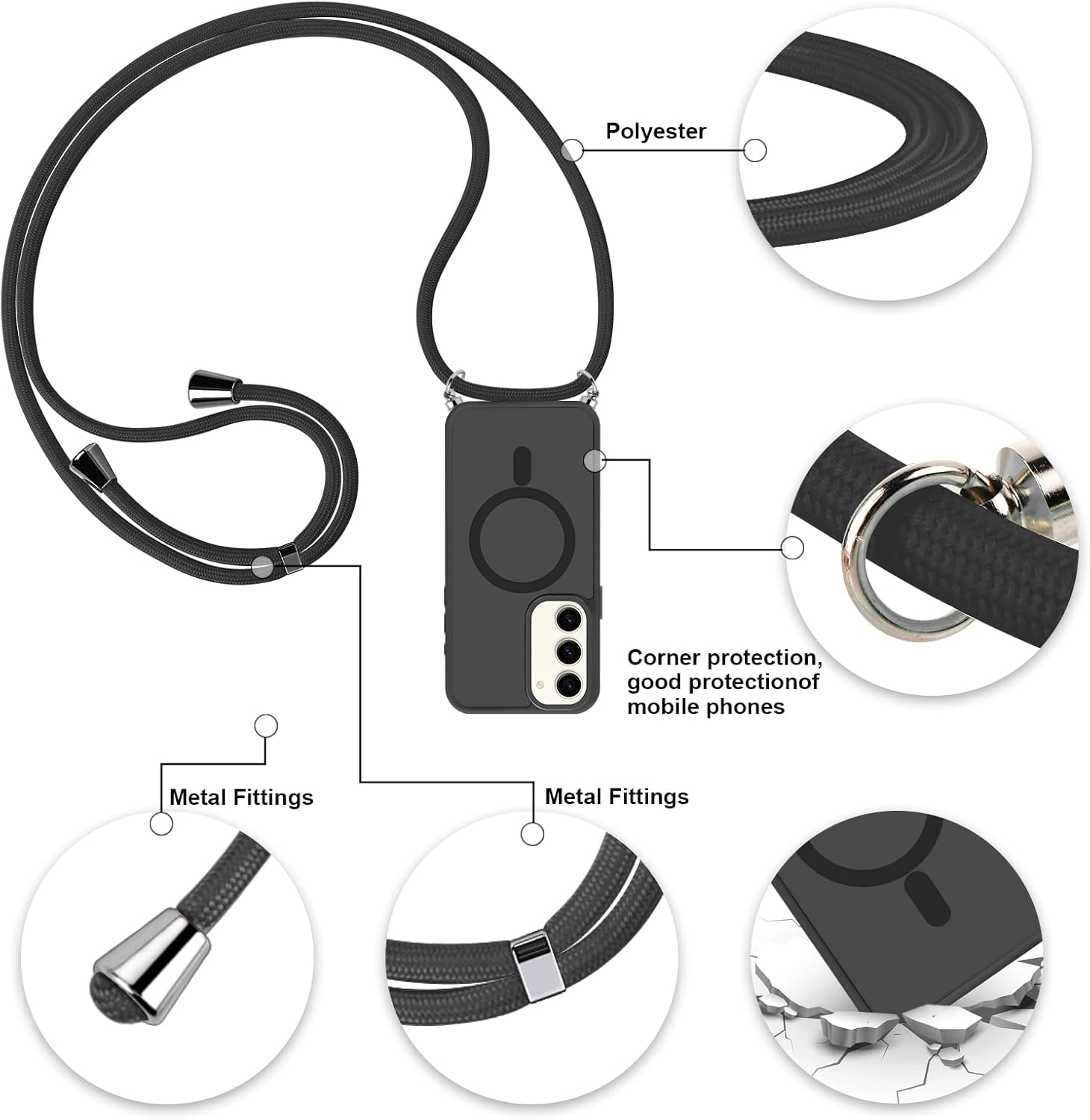Yoedge Magnetica Cover per Samsung Galaxy S23 5G 6,1″ con Cordino, Compatibile con MagSafe, Corda Collana Tracolla Laccio Custodia Traslucida PC TPU Antiurto Protettiva Case per Samsung S23, Nero