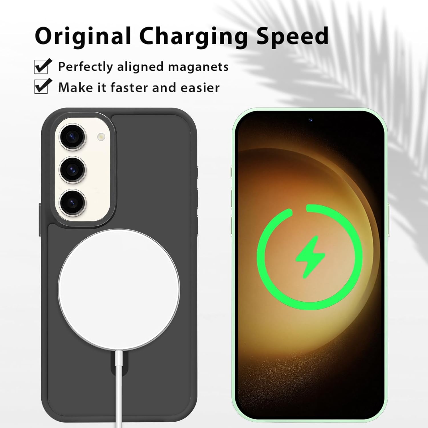 【Adsorbimento Super Magnetica】Questa cover per Samsung Galaxy S23 5G con i magneti integrati, fissare saldamente al caricatore magneticamente rendono la ricarica wireless più veloce e più semplice che mai. La nostra custodia opaca supporta tutti gli accessori Mag-Safe, come il caricabatterie wireless Mag Safe e il supporto magnetico per telefono da auto.