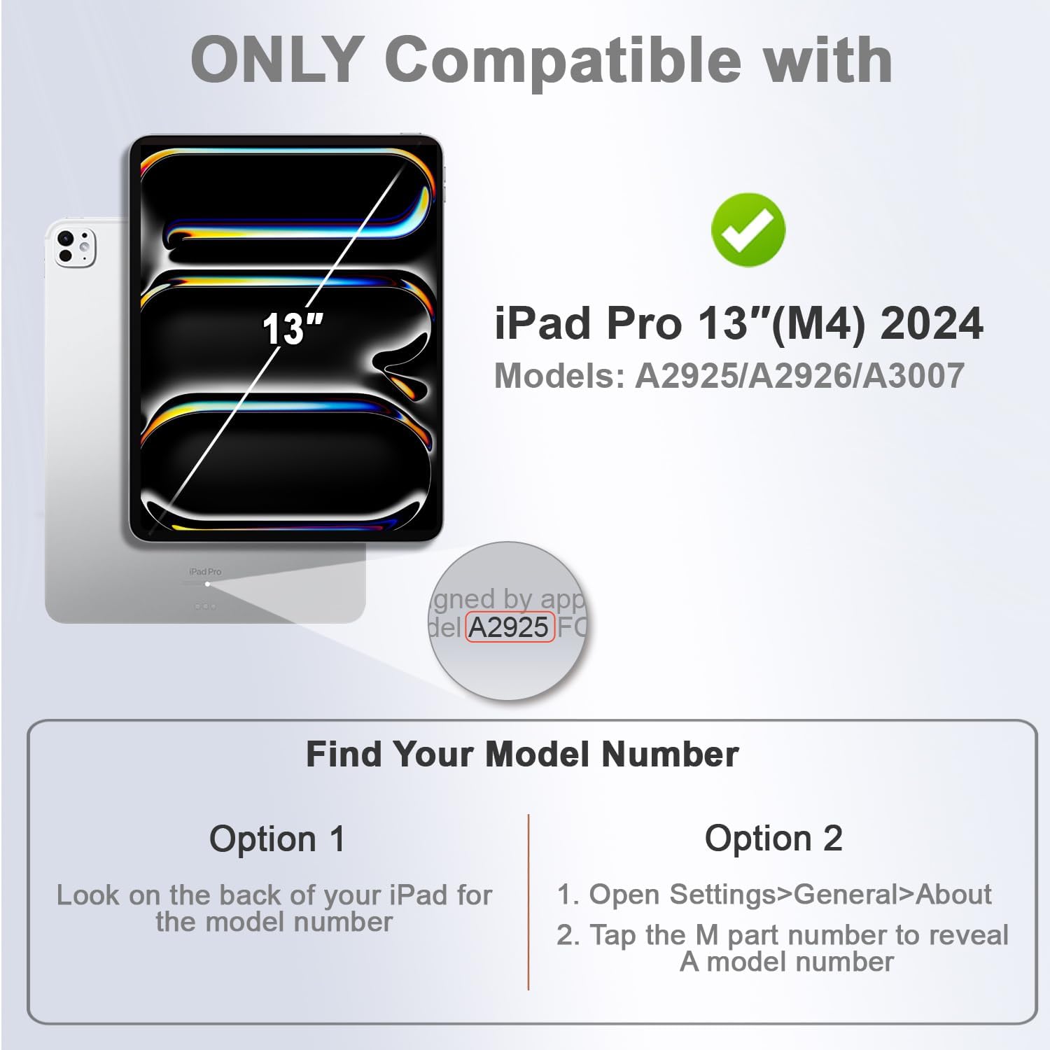 Perfetta Compatibilità: La custodia cover compatibile con iPad Pro 13 pollici 2024 M4 (7a generazione) (modello: A2925/A2926/A3007). Accesso completo allo schermo, alla fotocamera, ai pulsanti e alle porte di ricarica