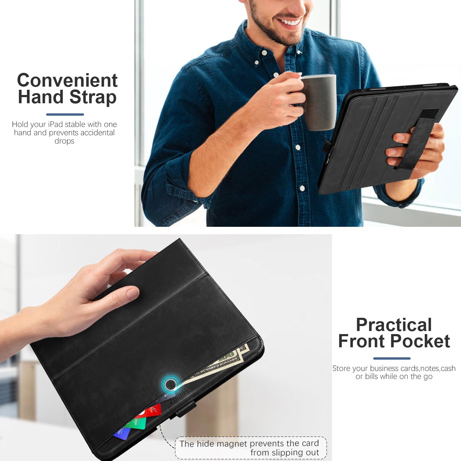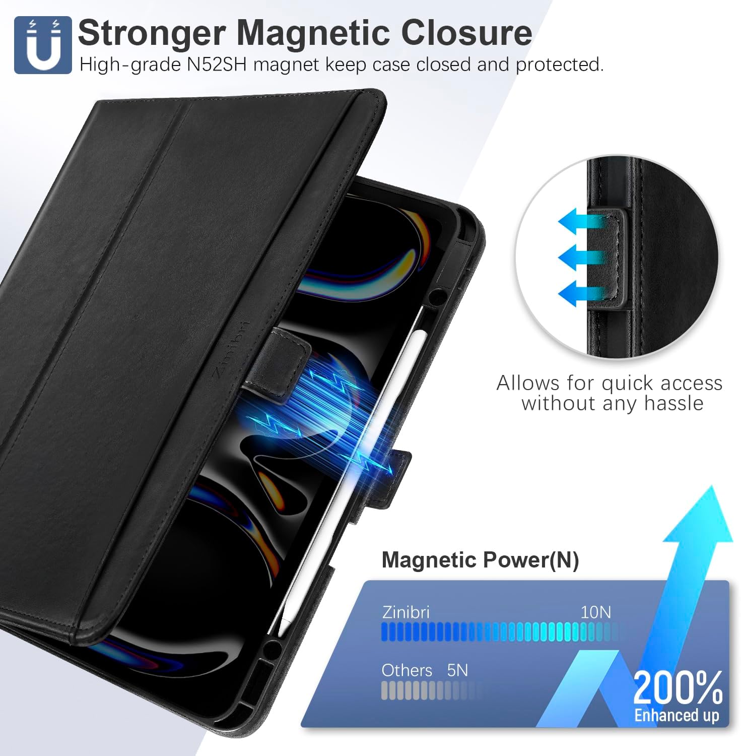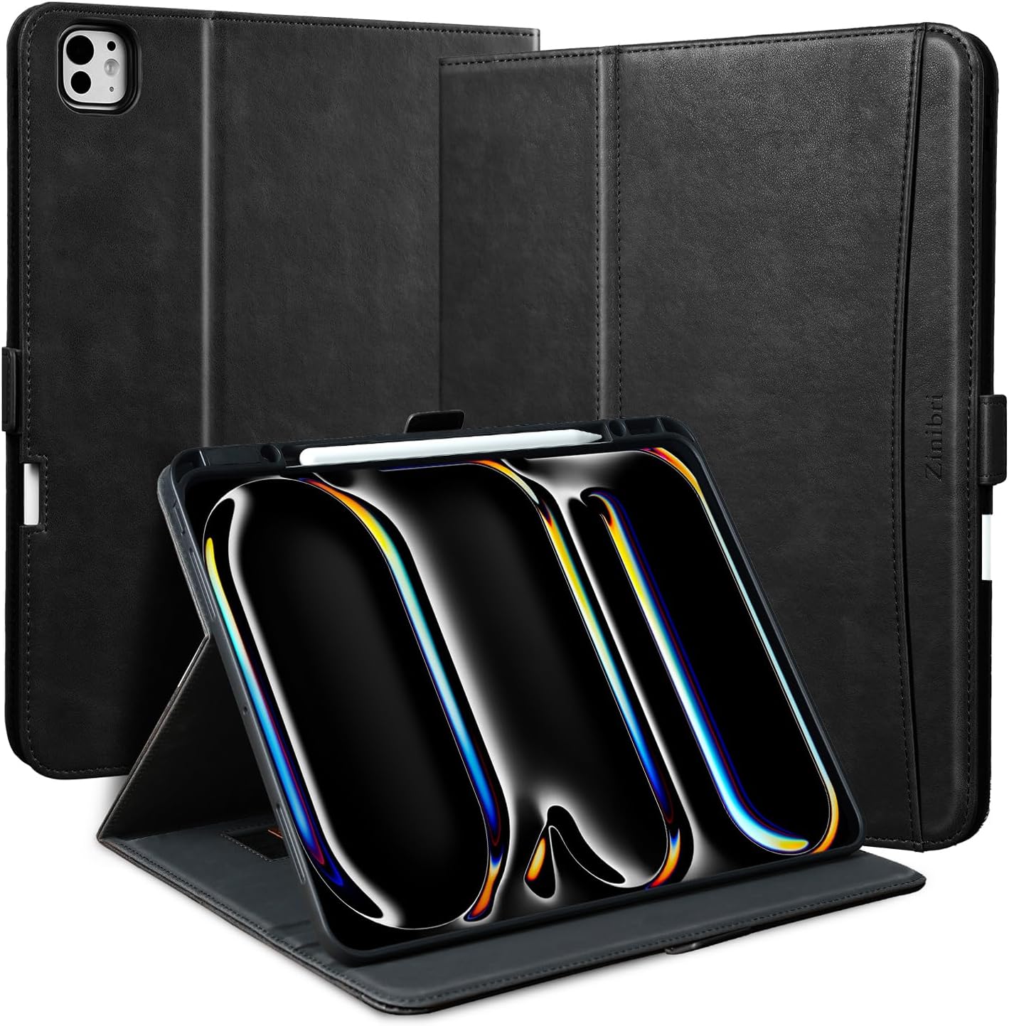 Zinibri Custodia Cover per iPad Pro 13 Pollici M4 2024 A2925 A2926 A3007 con Portapenna Tasca Cinghie Pelle PU Multi Angolo Supporto Case Chiusura Magnetica Auto Svegliati/Sonno,Nero