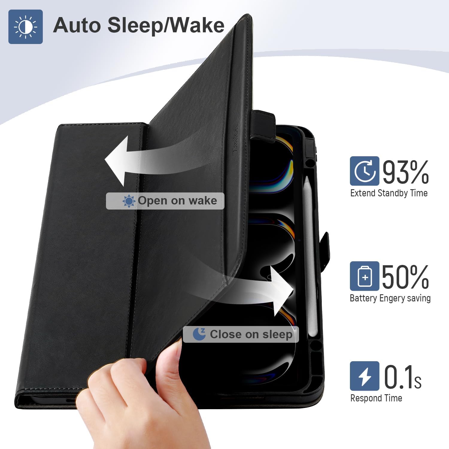 Forte Chiusura Magnetica & Auto Sveglia/Sonno: Le potenti chiusure magnetiche N52SH fanno sì che la custodia iPad Pro 13 2024 M4 si chiuda saldamente per evitare l’apertura accidentale. La smart cover magnetica supporta la funzione di sospensione/riattivazione automatica, protegge e prolunga la durata della batteria