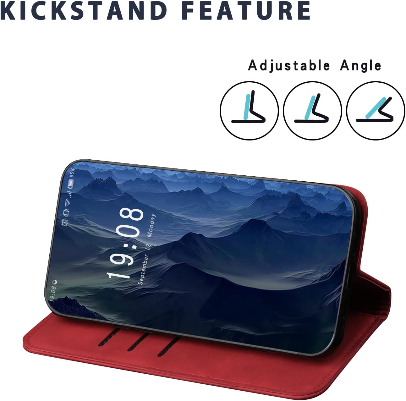 [Funzione stand]: La custodia a libro con funzione pieghevole consente di visualizzare lo schermo in orizzontale. Puoi regolare liberamente l’angolo per trovare la migliore prospettiva.