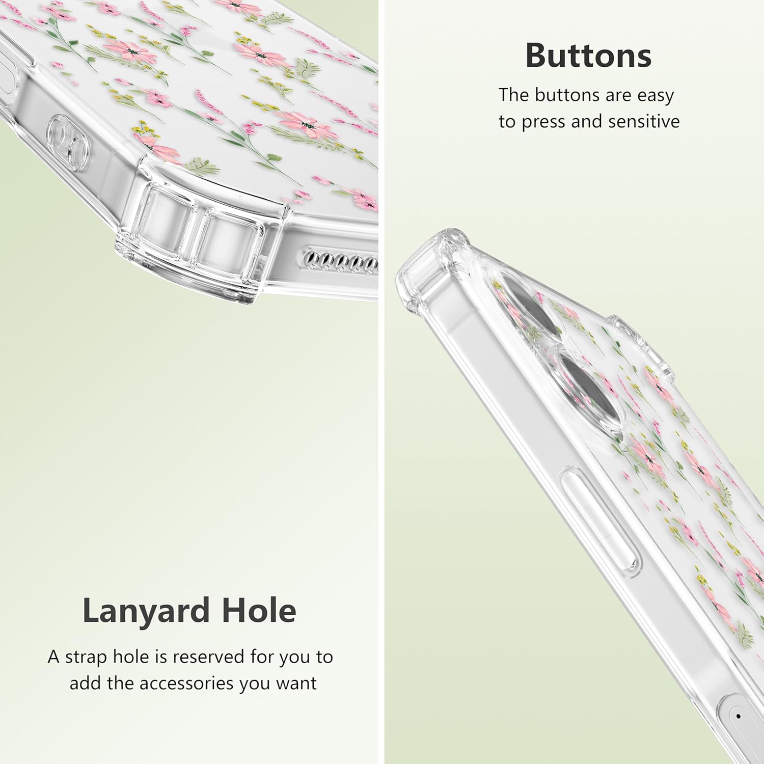 Design adorabile: abbiamo utilizzato materiali innocui e sofisticata tecnologia di stampa per rendere vivido motivo floreale su questa custodia per ZTOFERA per iPhone 16, che renderà il tuo telefono più unico e attraente. Ed è progettato con due piccoli fori nella parte inferiore sinistra per legare il cinturino da polso o il cordino