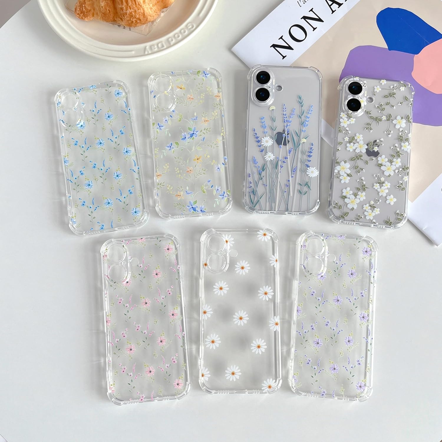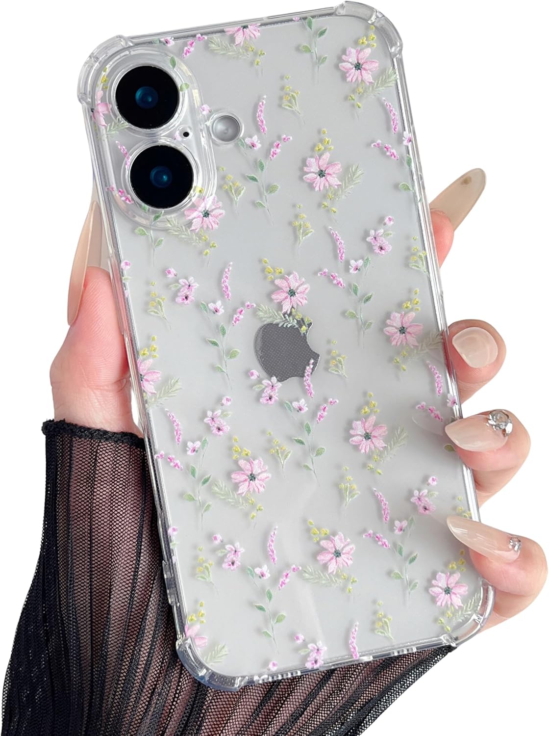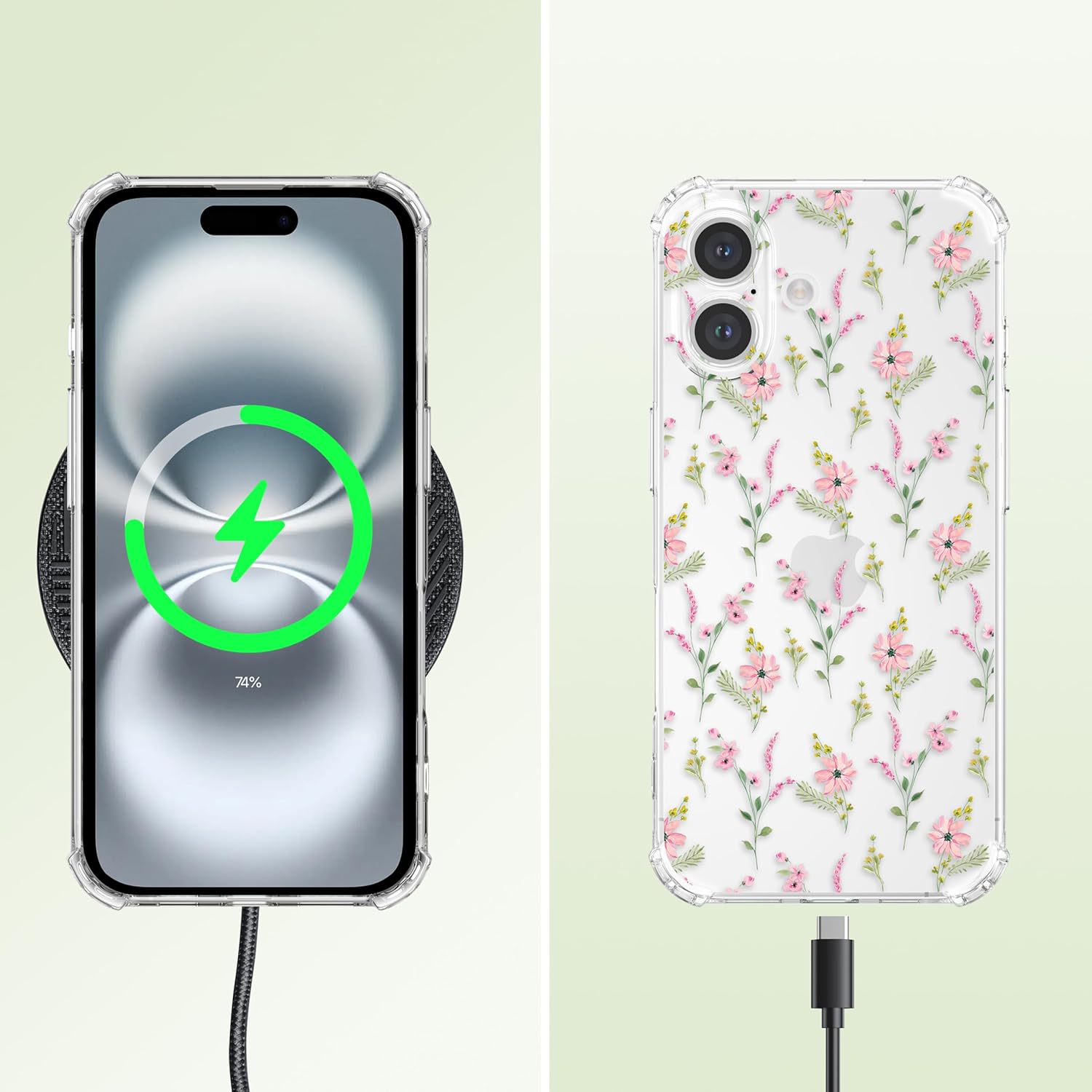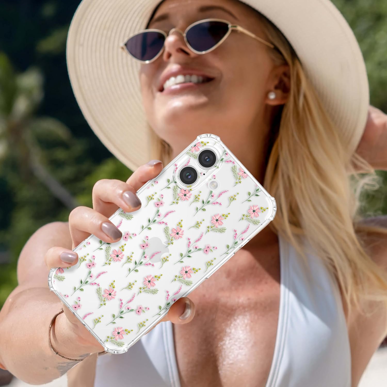 ZTOFERA Custodia per iPhone 16, custodia trasparente con motivo floreale carino per donne e ragazze, custodia sottile in TPU con 4 angoli, custodia per iPhone 16, fiore rosa