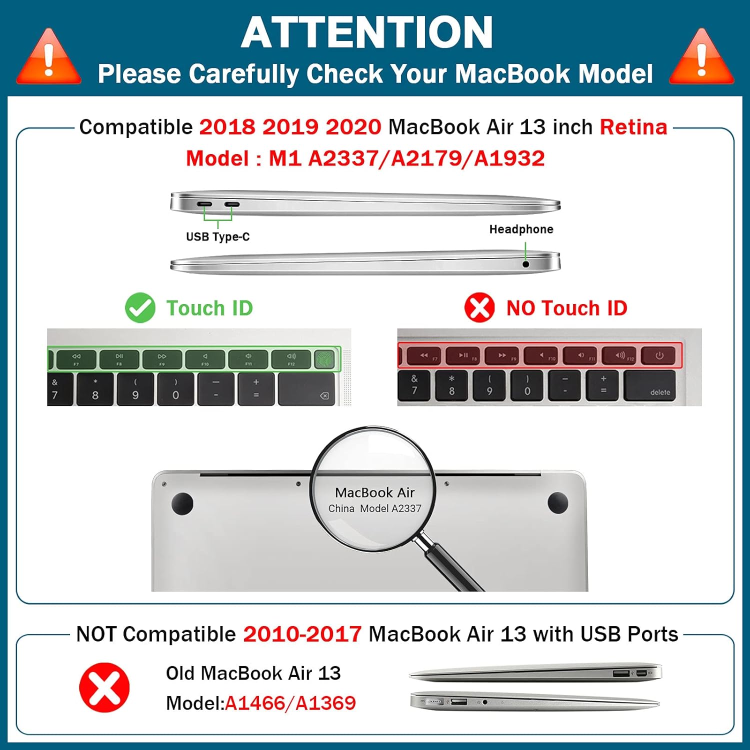 ✔ 𝗖𝗢𝗠𝗣𝗔𝗧𝗜𝗕𝗟𝗘 – ZYB Custodia è compatibile con MacBook Air M1 (2021 2020) modello A2337, MacBook Air 13 pollici con Display Retina e Touch ID (2020 2019 2018) modello A2179 /A1932. Il numero di modello “Model Axxxx” si trova sul retro del tuo Mac Book Air.