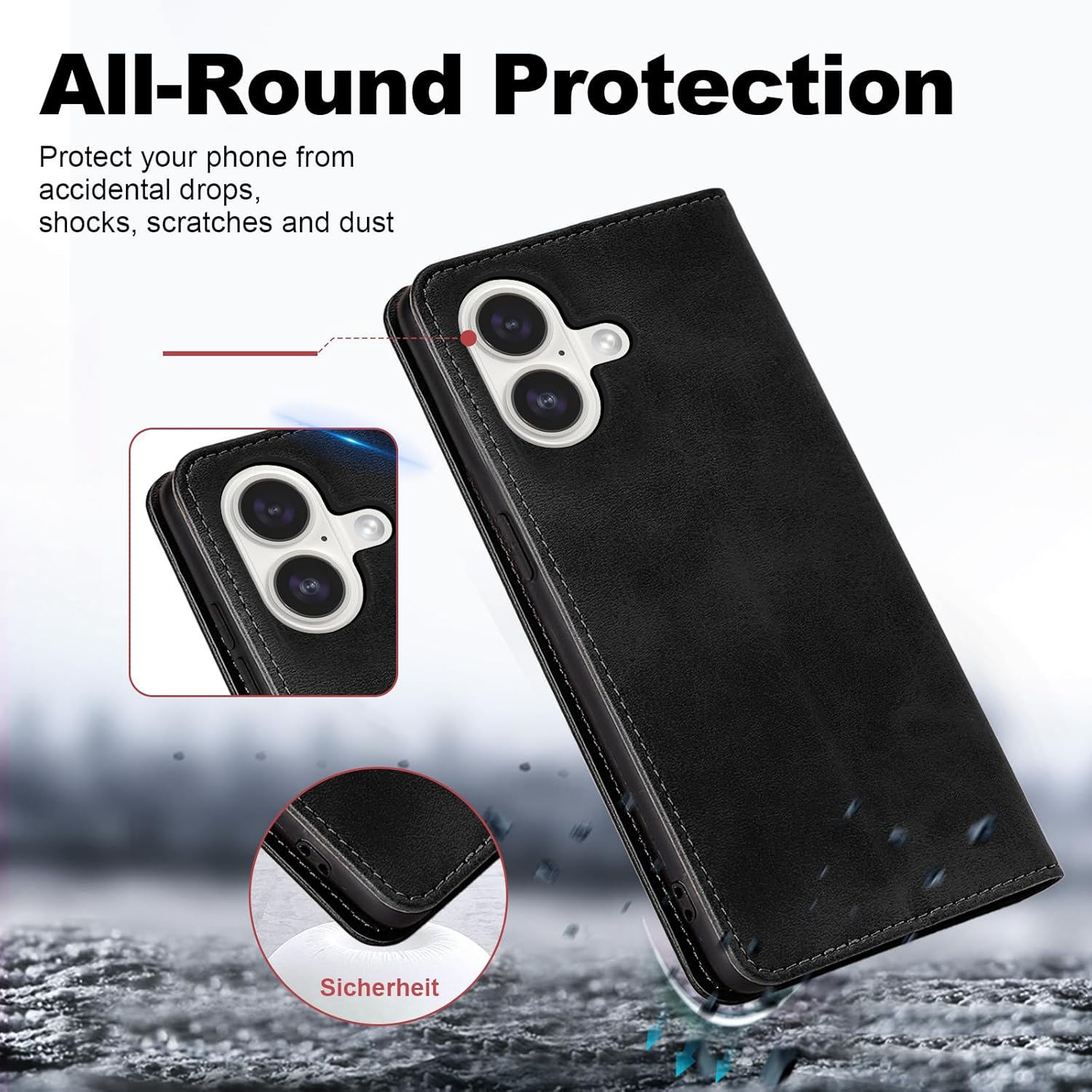 ZYIMOU Cover per iPhone 16, Custodia a Premium Pelle PU Portafoglio Flip Libro Libretto Caso [Protezione Completa] [Slot per Scheda] [Funzione di Supporto], Nero