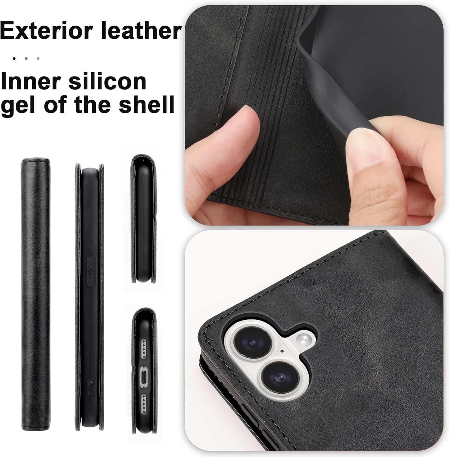 Premium PU Leather : Questa custodia per telefono iPhone 16 è realizzata in ecopelle resistente. Il supporto flessibile in silicone gel TPU mantiene il telefono in posizione e fornisce una protezione extra dai graffi sui lati del telefono